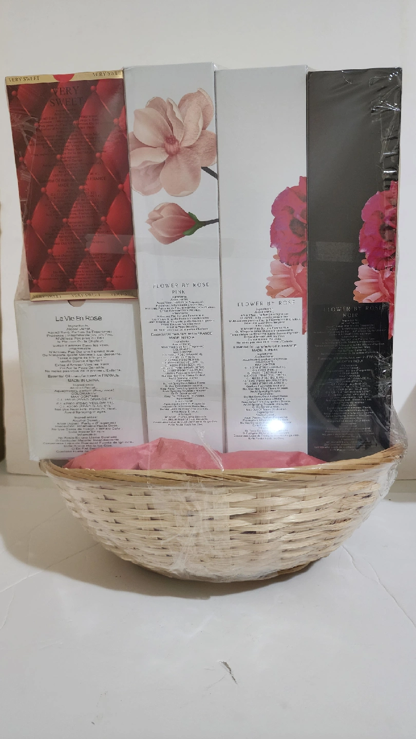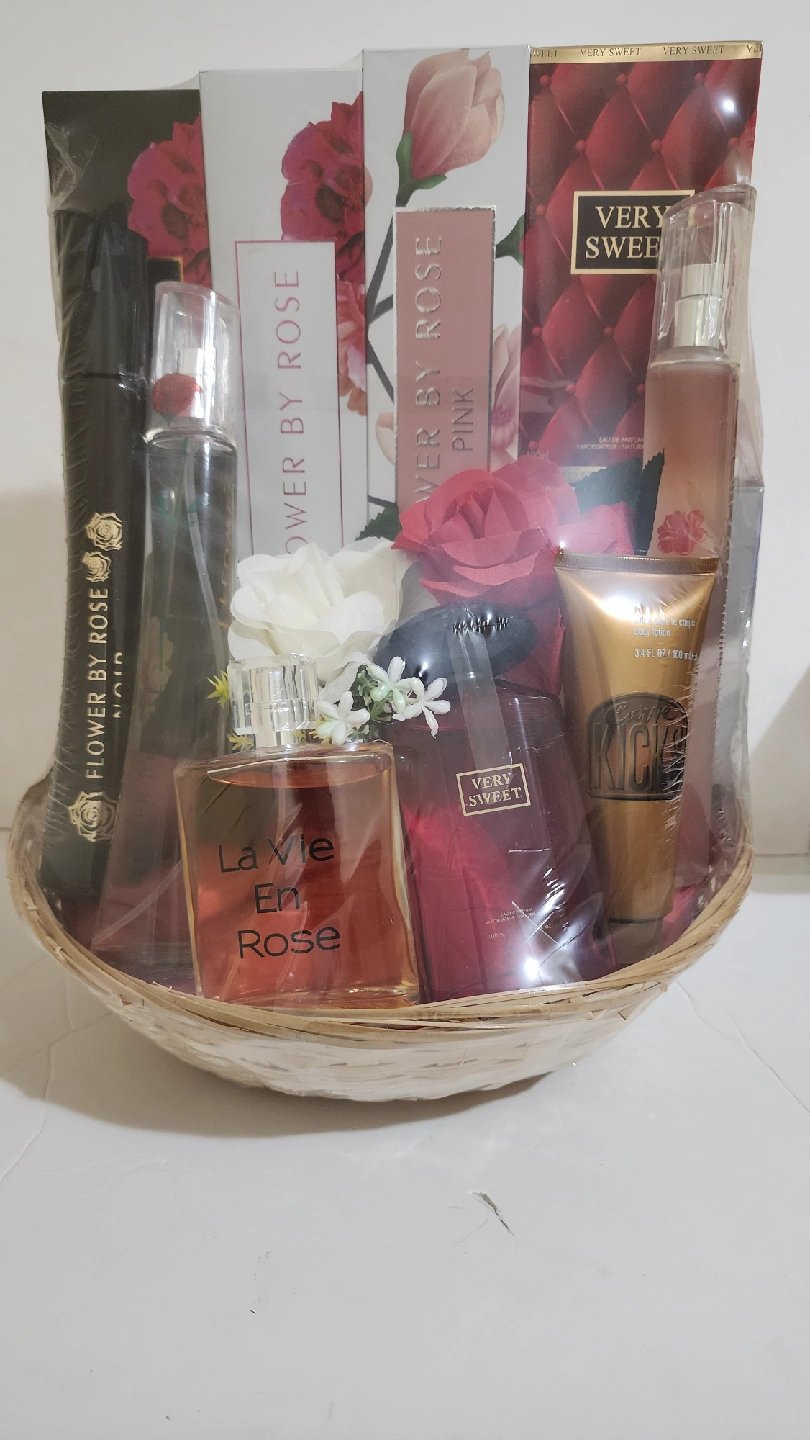 12Selling a perfume bundle that includes various Rose scents and 1 body lotion -La Vie En Rose -Flower by Rose Noir -Flower by Rose Pink -Flower by Rose -Very Sweet -curve kicks Body lotion Perfect for trying out new fragrances!