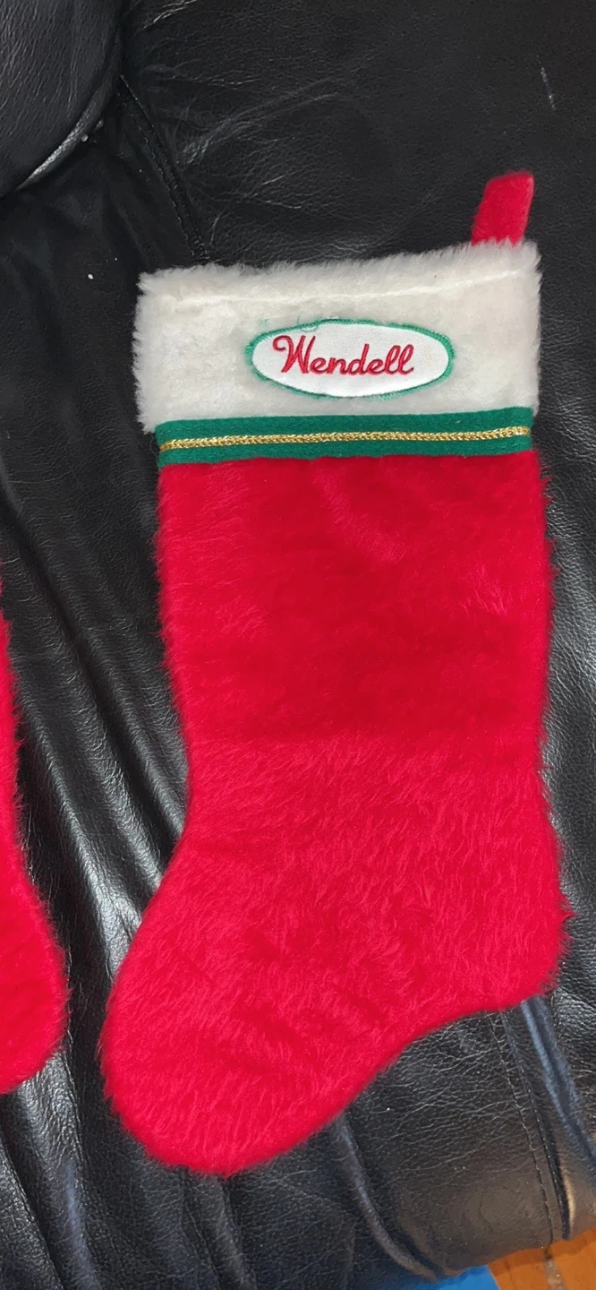 15Here's a festive red Christmas stocking with the name 'Wendell' and “Jason” embroidered on it! Perfect for adding a personal touch to your holiday decorations $4 each
