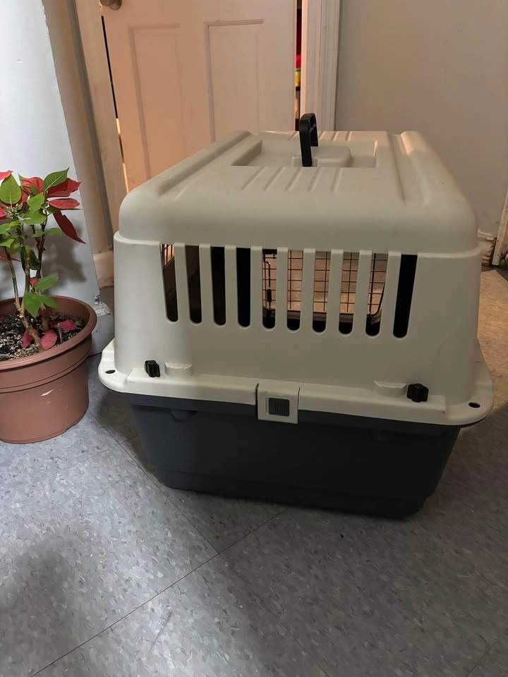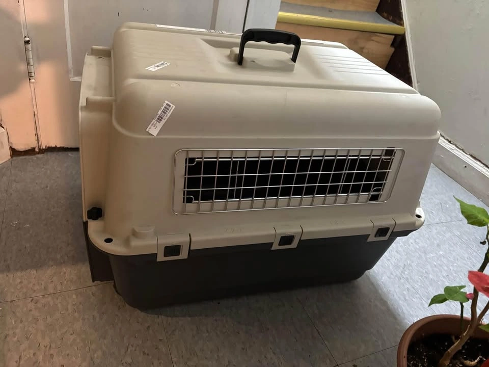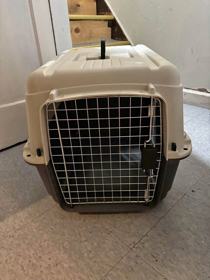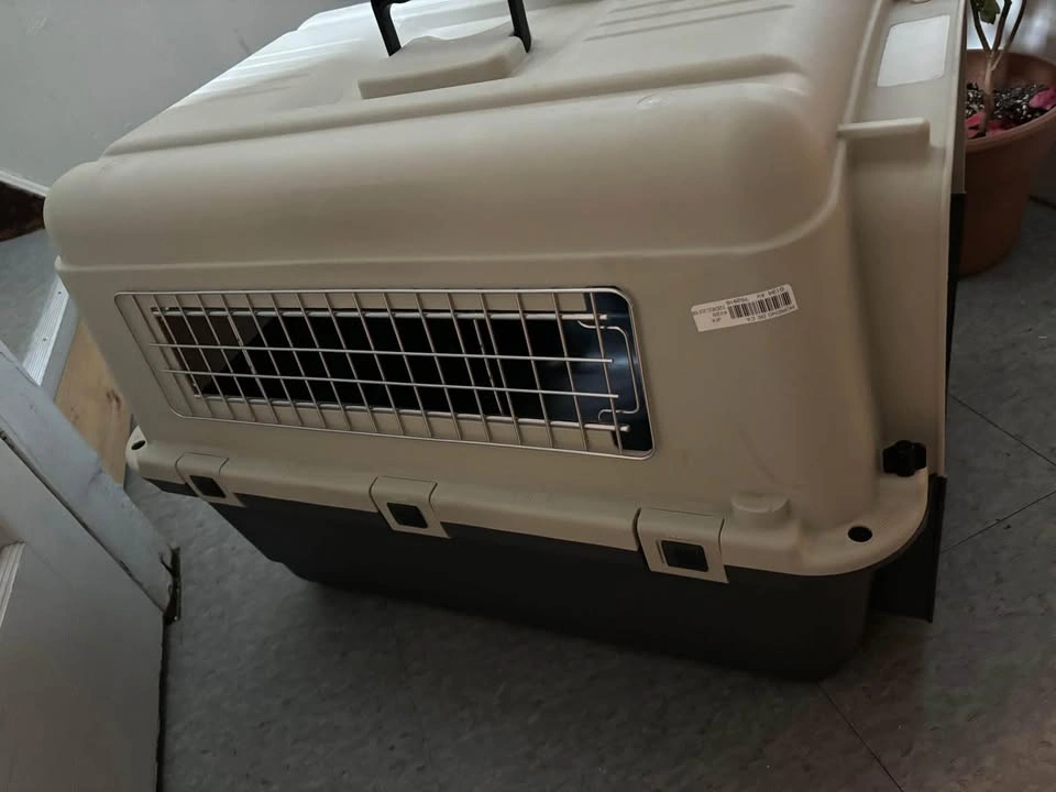 Durable, sturdy pet carrier for dogs and cats. IATA airline approved. Suitable as an indoor or outdoor crate for large dogs. Like new. Measurements: Height: 19 inches Length: 27 inches Width: 19.5 inches