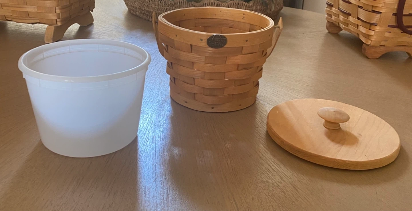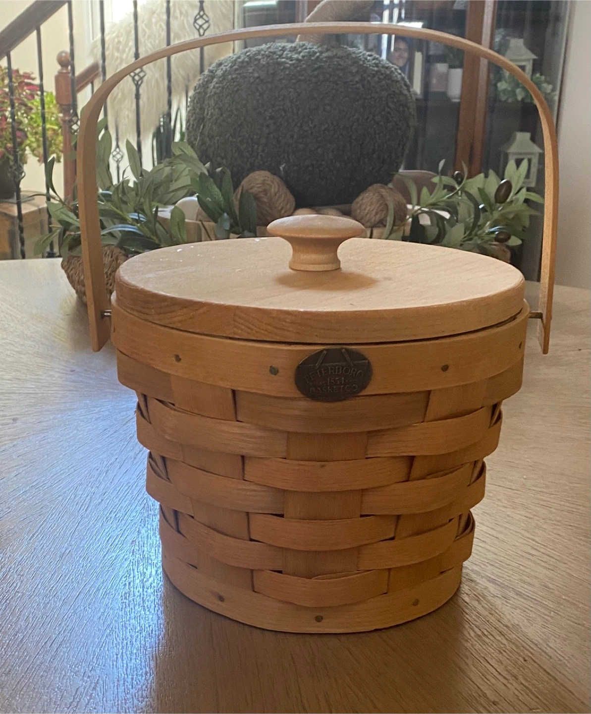 10Selling a charming Peterboro Basket Co. basket with a lid! It's in great condition and perfect for storage or decor includes hard plastic liner This basket features a classic woven design and a sturdy construction. Many uses It would be a lovely addition to any home!