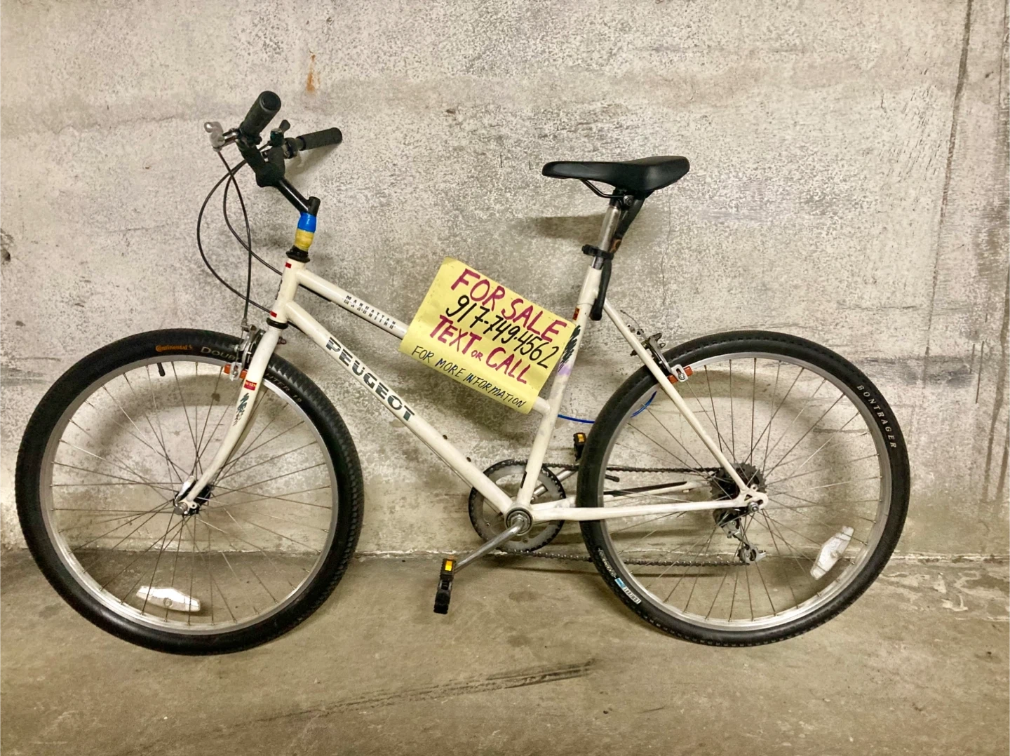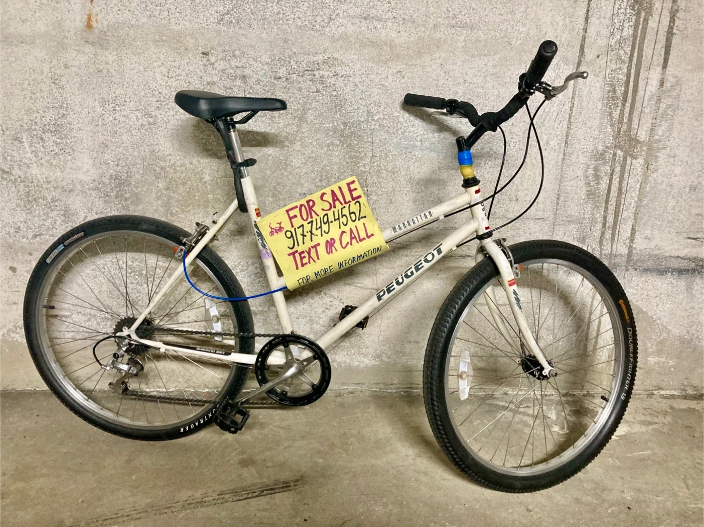 Selling a Peugeot “Manhattan” non electric bike. It has a Shimano 6 gears system. Very clean, well lubricated, no rust, smooth ride. Comfort saddle is anti-theft chained, non slippery pedals. Handlebar is wide, with nice grips, strong brake levers and precise gear shifter. Very comfortable upright riding position. Great for groceries shopping or safe riding with traction tires.