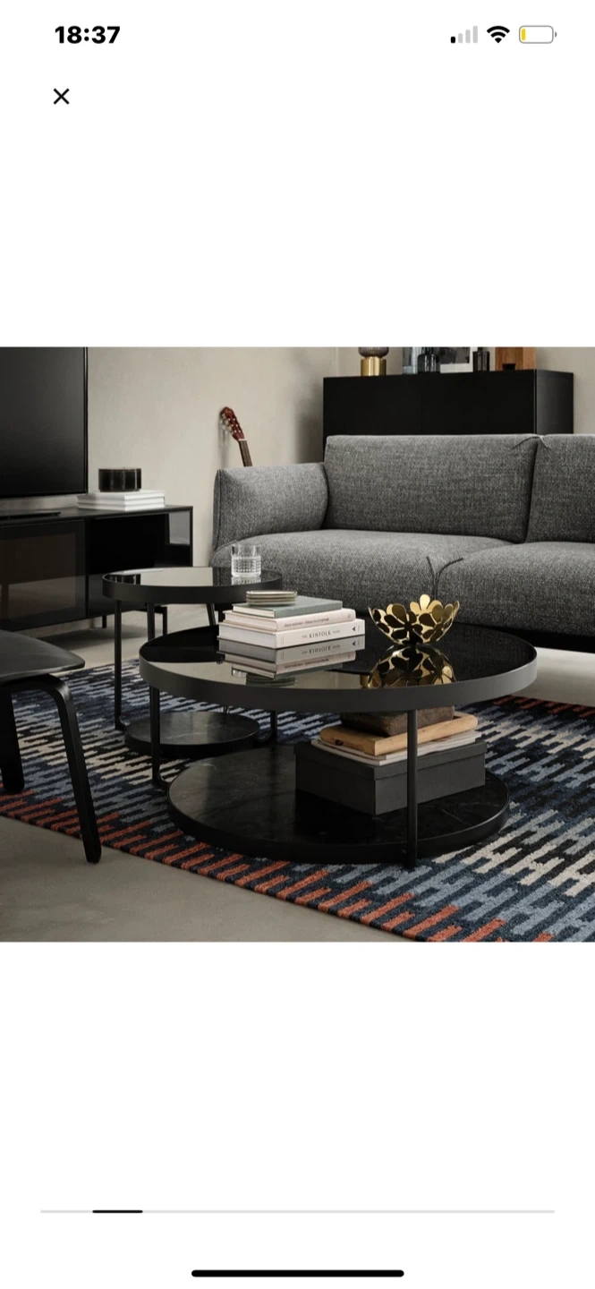 Selling an IKEA FRÖTORP coffee table in anthracite marble effect with black glass.