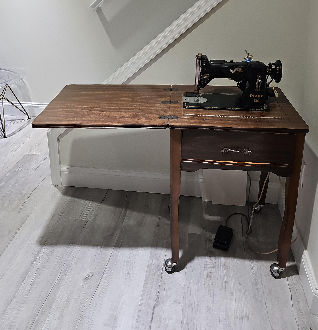 Selling a Pfaff 130 sewing machine complete with its original table! It's a vintage model but still in good working condition. Perfect for someone who appreciates classic sewing machines