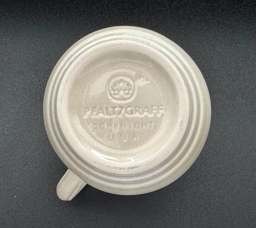 20Pfaltzgraff Creamer Photo is of actual item, so you can see that it's in excellent, like new condition Color: Cappuccino Height: 4 1/4 in Crafted In USA / China Microwave Safe, Dishwasher Safe Mouse in last picture for size comparison and is not included(Please check my other auction for the matching Sugar Bowl & Lid)