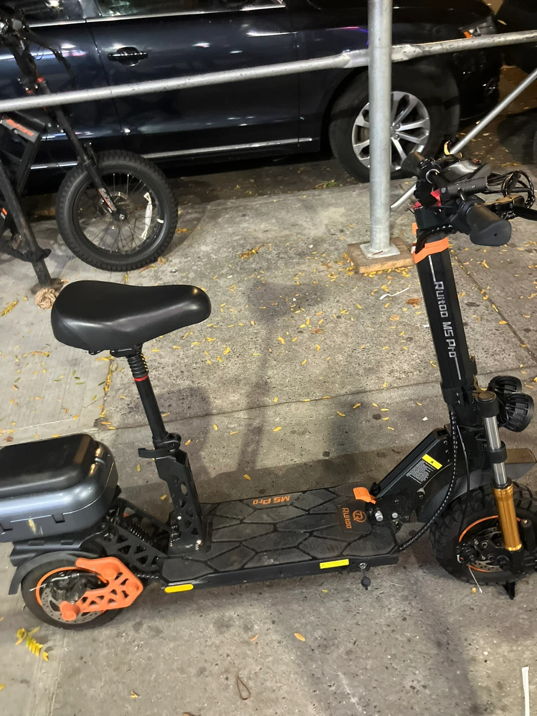 This is a Rugoo MS PRO electric scooter. It features a comfortable seat and durable construction. This scooter's design makes it a great option for commutes! Also I’ll do a trade for another scooter or bike and it’s nothing wrong with my bike