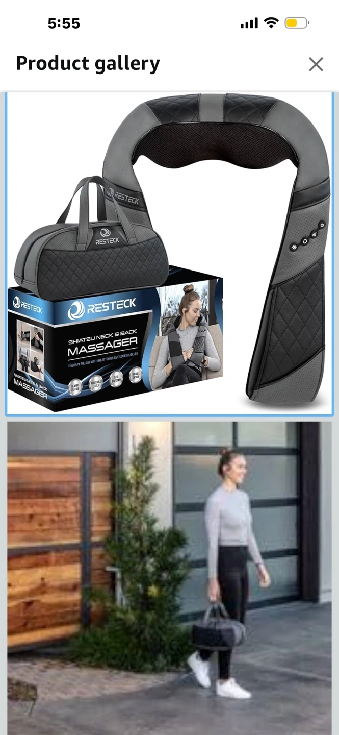 I'm selling a Resteck Shiatsu Neck and Back Massager! It comes with a heating feature and adjustable levels. It also has an auto shutdown feature and a durable design. Comes with the box and carry bag included!