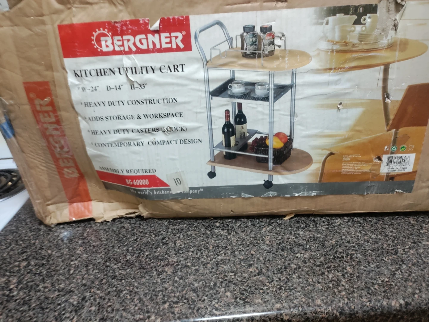 This Bergner kitchen utility cart adds storage and workspace. It features heavy duty construction and heavy duty casters for easy movement. The contemporary compact design is great for small spaces!
