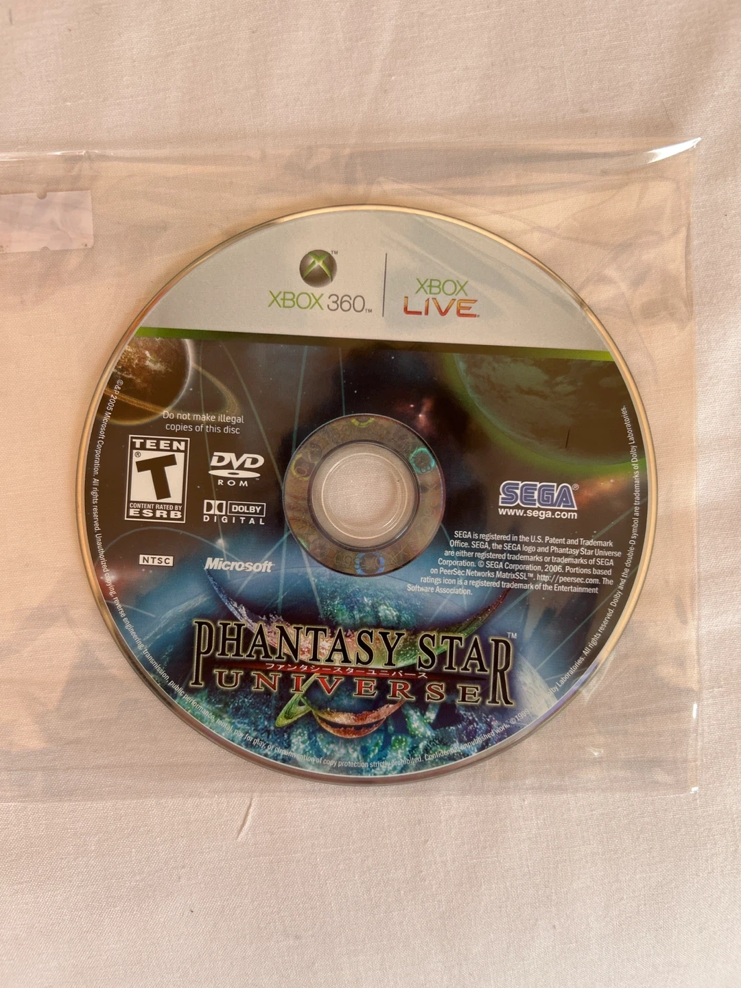 Selling a copy of Phantasy Star Universe for the Xbox 360! The disc is in good condition and ready for a new player to enjoy. It's rated T for Teen by the ESRB and features Dolby Digital audio.