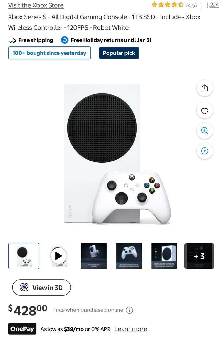 Selling a brand new Xbox Series S in Robot White! It comes with a 1TB Solid State Drive, ensuring plenty of space for all your favorite games. The box includes the Xbox Wireless Controller. Enjoy gaming at up to 120 FPS with Xbox Velocity Architecture!