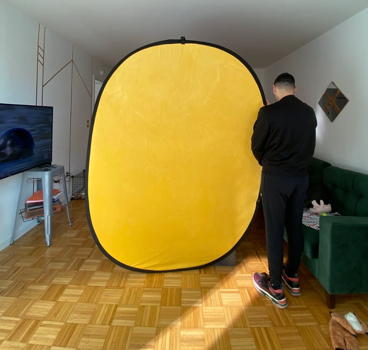 Collapsible Backdrop This backdrop measures 5x6.5ft (1.5x2m) and can be oriented horizontally or vertically as per your needs. Comes with a compact, zippered carrying case for easy transport and storage https://offerup.com/redirect/?o=aHR0cHM6Ly93d3cua2F0ZWJhY2tkcm9wLmNvbS9wcm9kdWN0cy9zb2xpZC15ZWxsb3ctcmVkLWNvbGxhcHNpYmxl