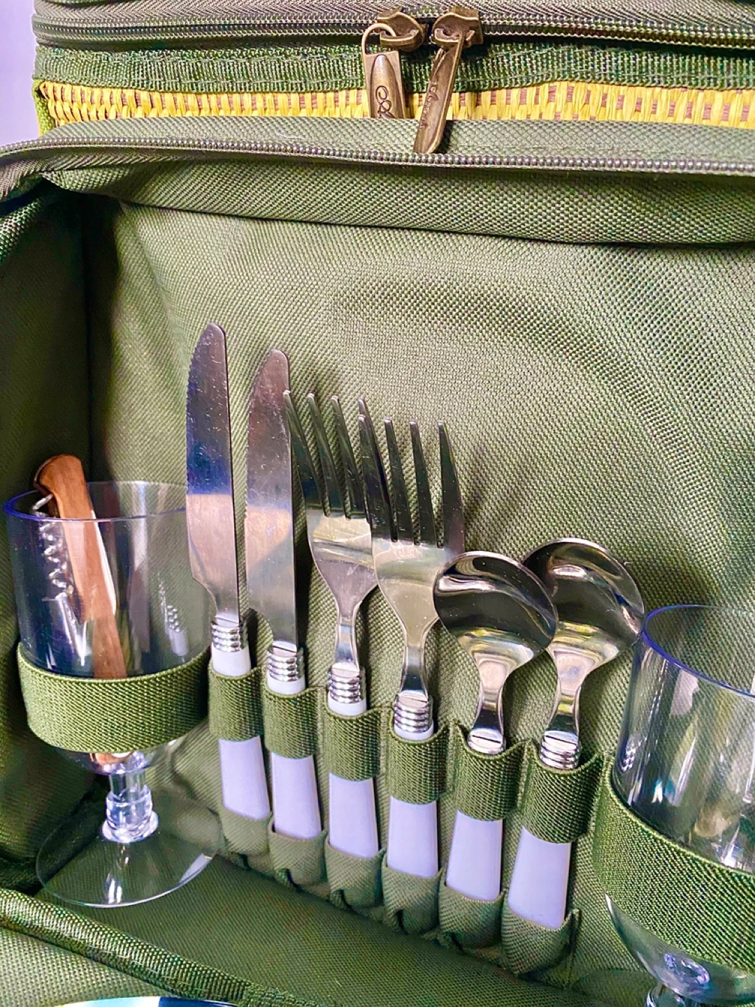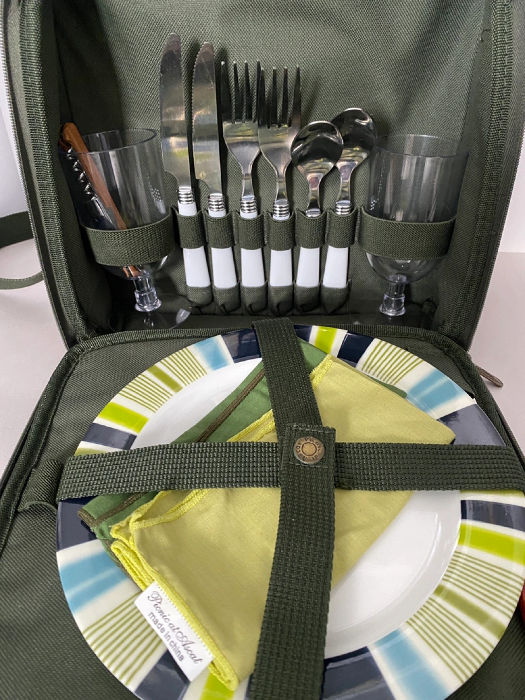 328This Picnic at Ascot picnic basket is perfect for outdoor dining! It includes plates, cutlery, glasses, and napkins, all neatly organized within the insulated bag. Ready for your next picnic adventure! Has a service for 1-2 people. Pickup on Astoria Blvd South and 37th Street.
