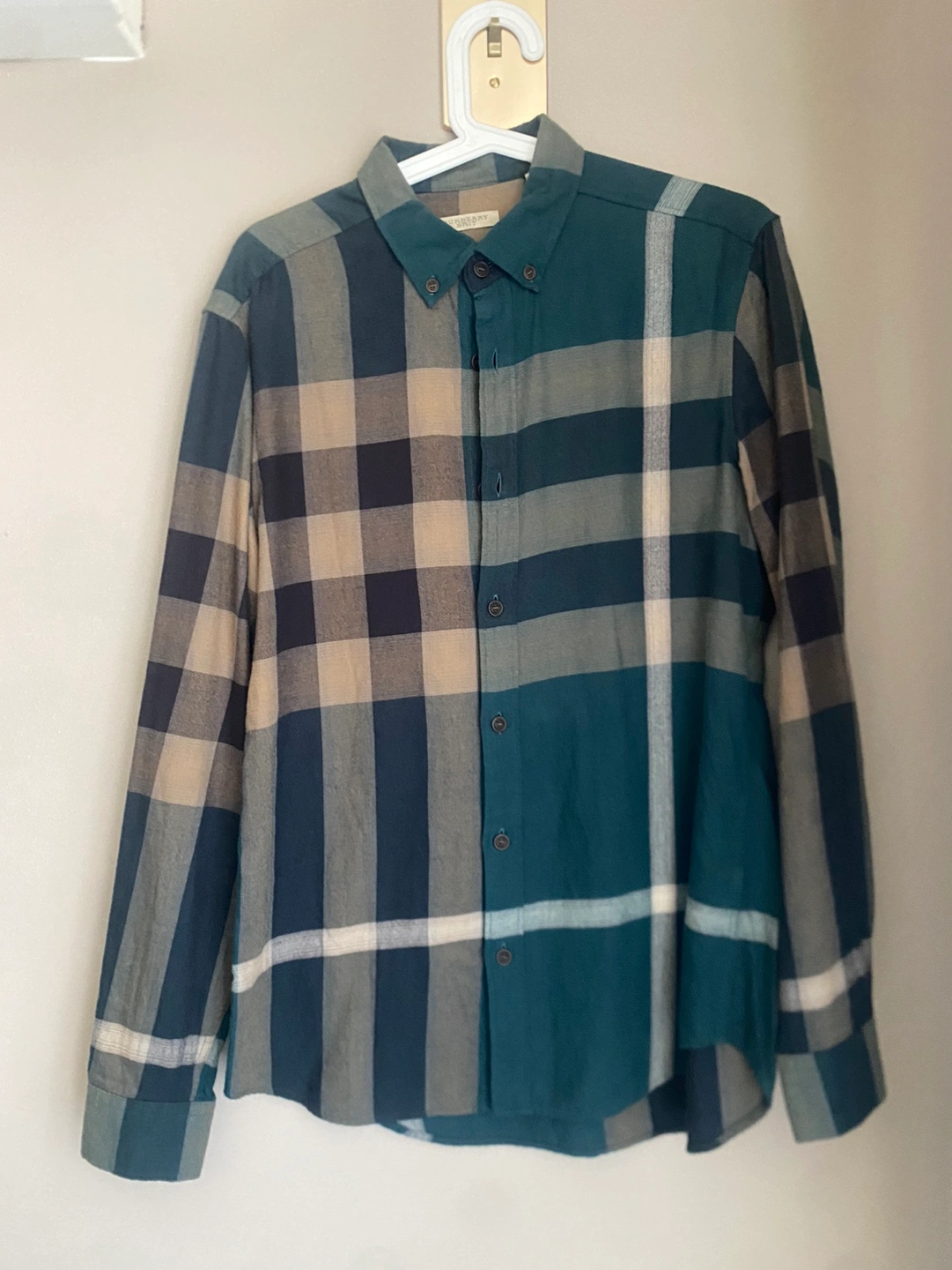 Burberry Men dark green shirt with iconic pattern design, like new. size M regular fit for men