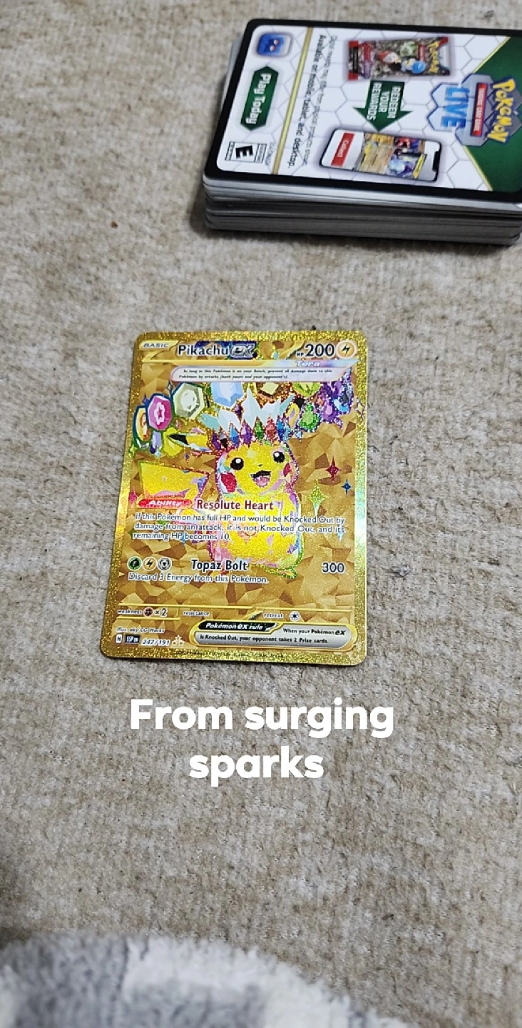 Selling a Pikachu EX gold card, numbered 247/191. I just pulled it from a destined rivals booster bundle. protected, MUST PICK UP. disabled and can't drive.