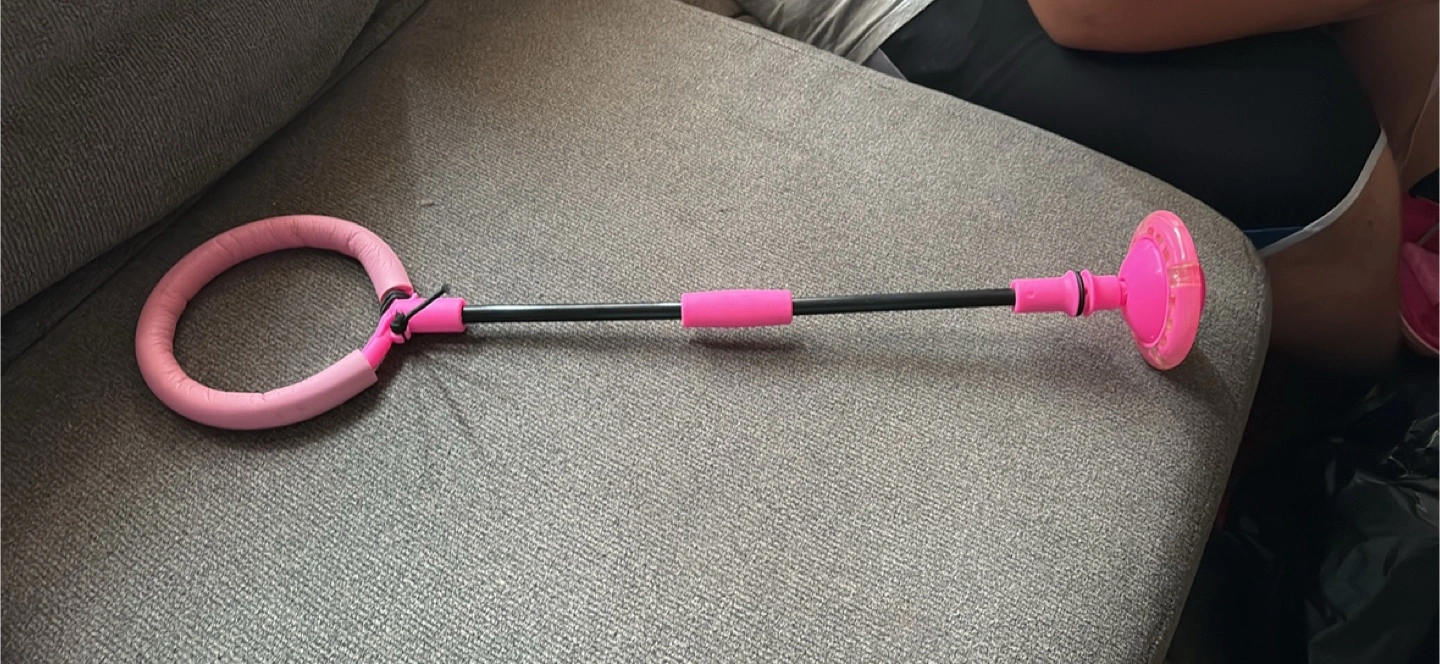 Get ready to have some fun with this pink ankle skip ball toy! It's perfect for getting some exercise and enjoying the outdoors. This toy is in great condition and ready for a new home