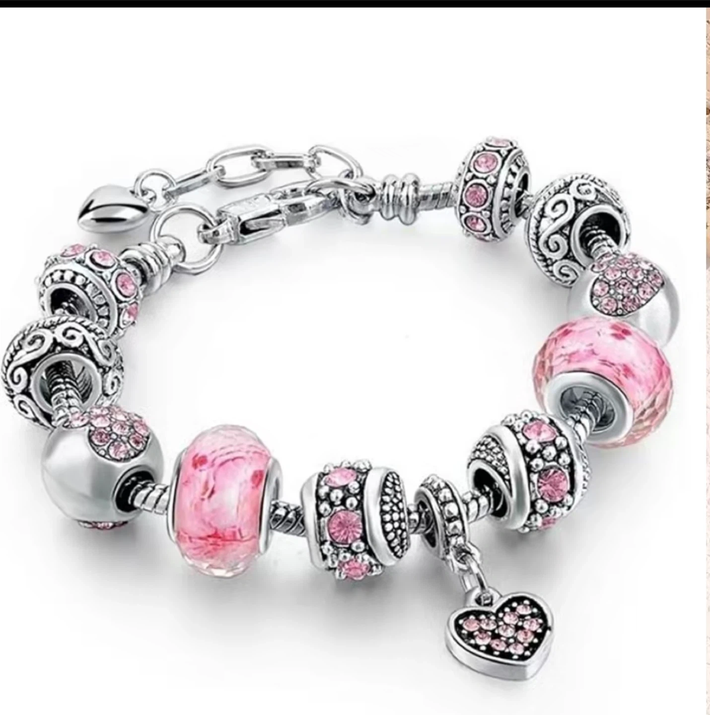 Pink Beaded Charm Bracelet