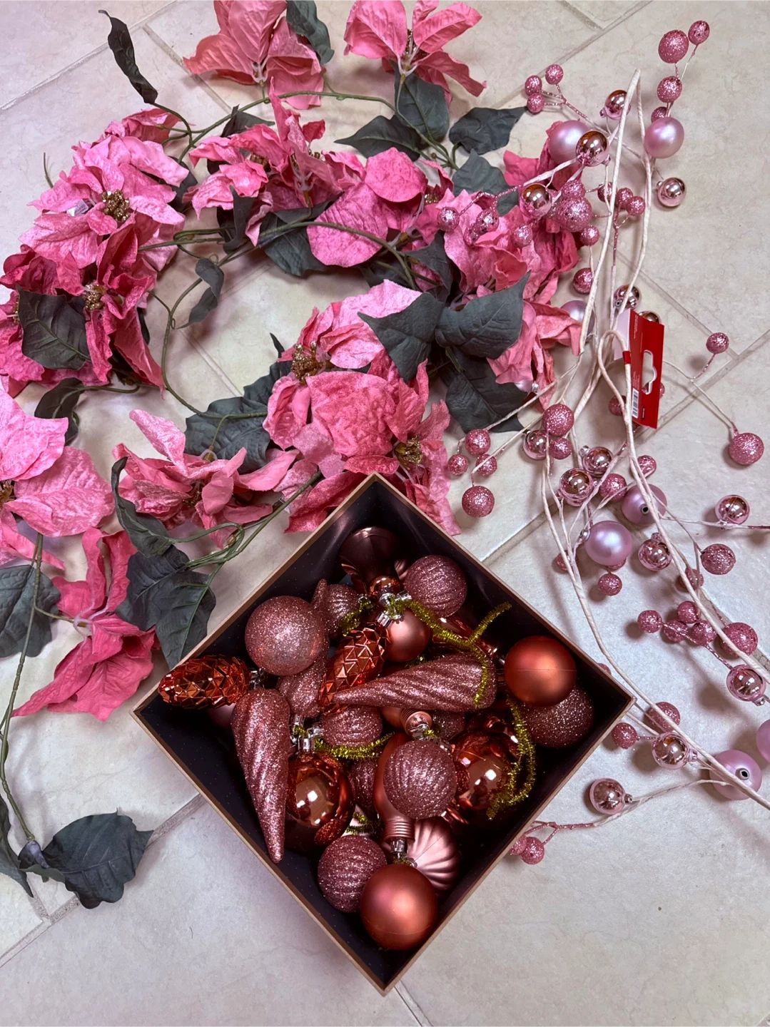 151I have a collection of pink Christmas ornaments and a floral garland for sale. They are in good condition and ready to decorate your home for the holidays! Pink is the new Christmas! ☺️🩷🎄💝 $25 for all.