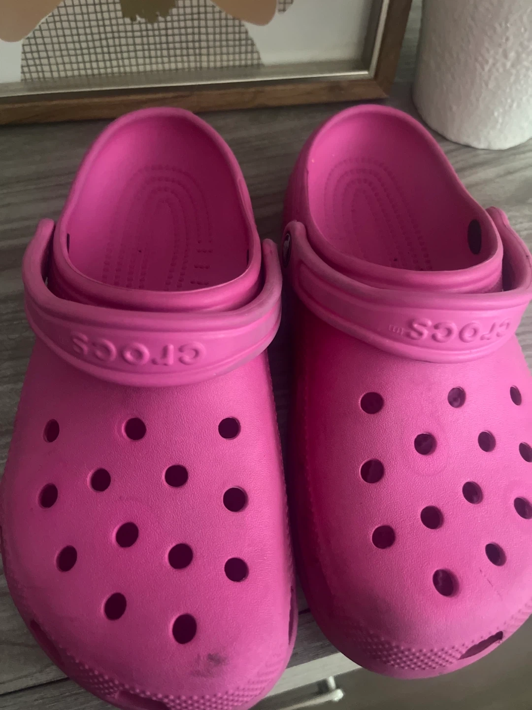 Selling a pair of pink Crocs! They're in good condition and ready for a new home