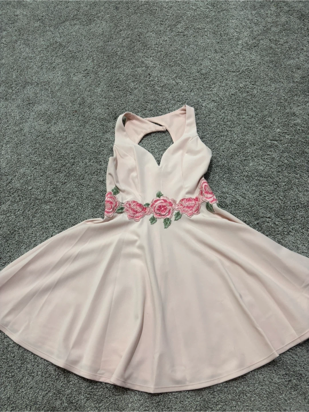 Selling a cute pink dress with floral embroidery. It's in good condition and ready for a new home!