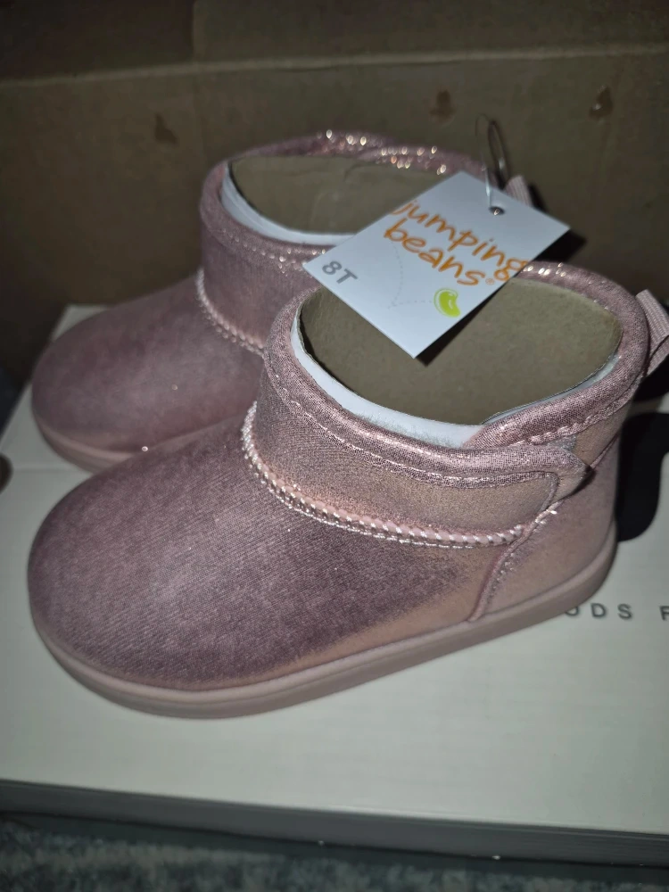 5These adorable pink glitter boots are 8T size! They're new. Perfect for adding a touch of sparkle to any outfit.