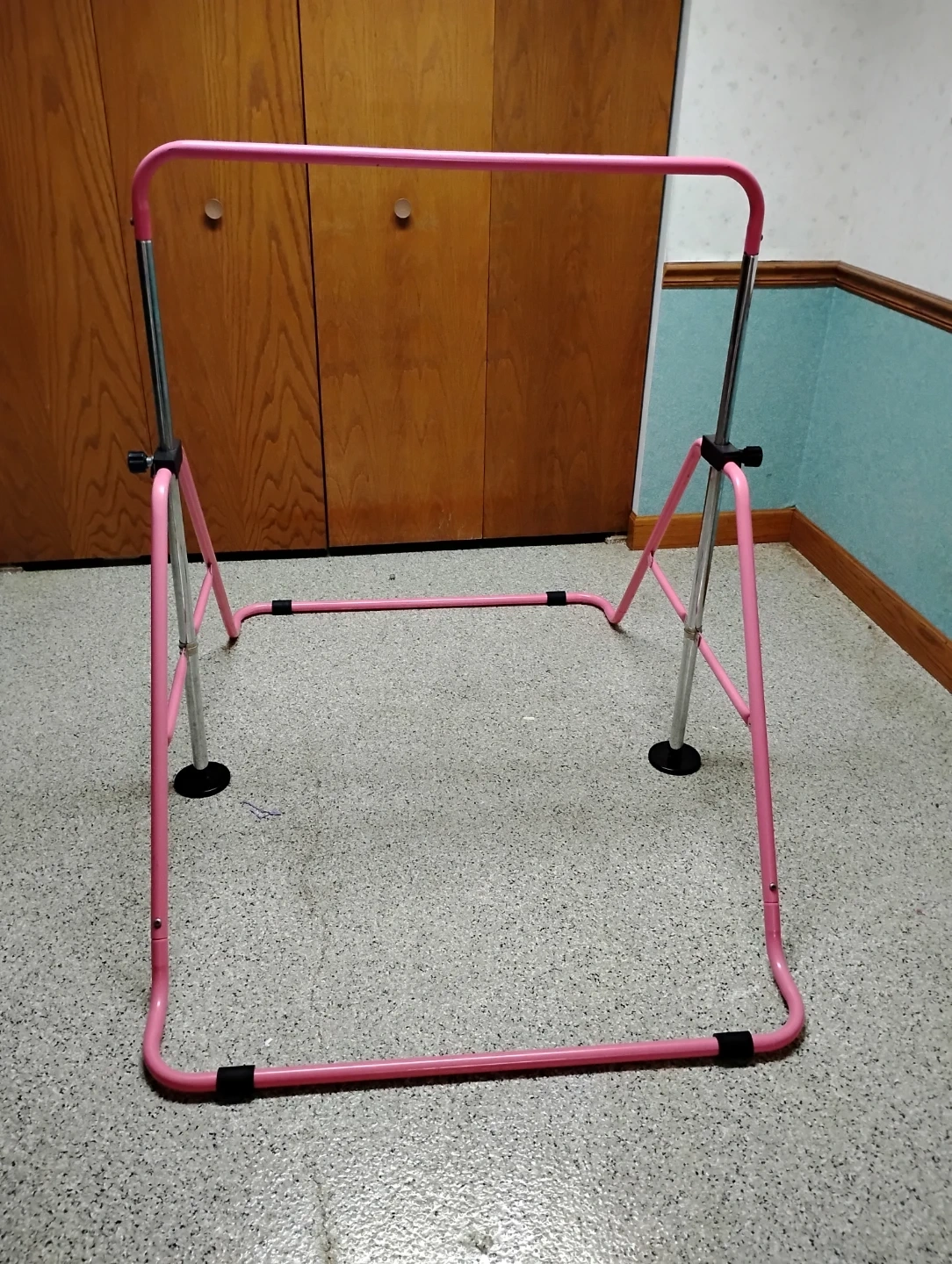10Selling a pink gymnastics bar. It's in used condition but it's still functional and ready for a young gymnast to practice on CV omes with a grey thick carpet