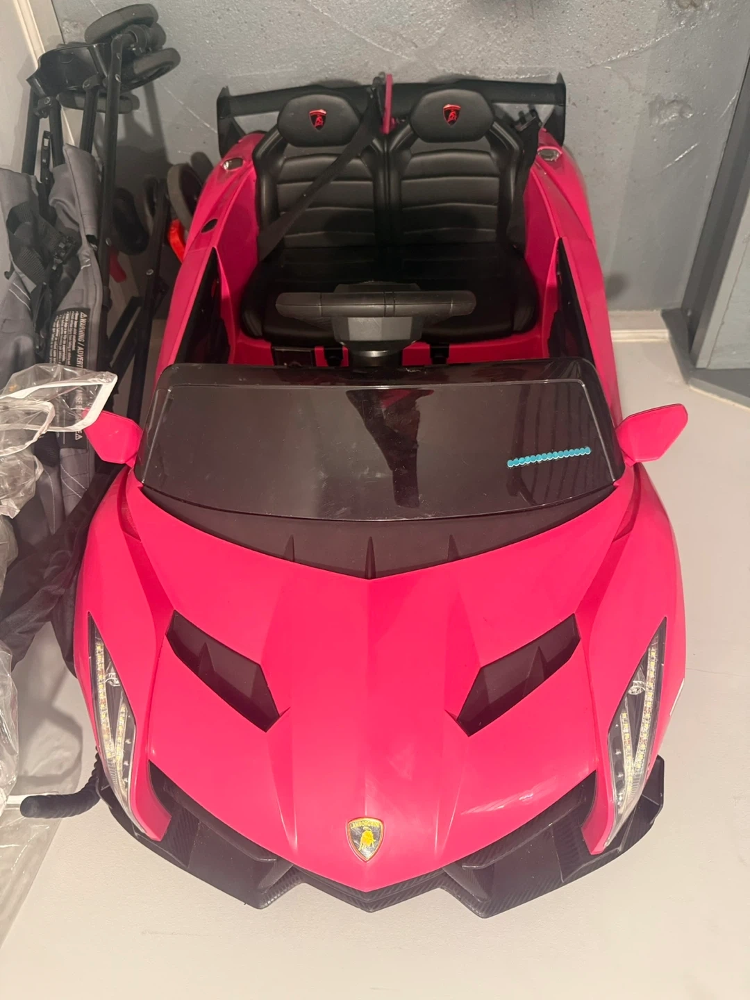 60Selling a fun pink Lamborghini ride-on car for kids! It's in great condition and ready for a new little driver. Perfect for cruising around the neighborhood or backyard adventures! has remote control