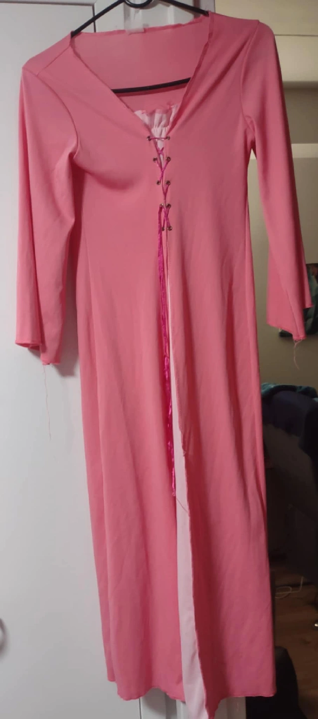 Selling a pink long sleeve dress costume be great for Halloween or playing dress up princess style fits and 8,9,10 year old depending.