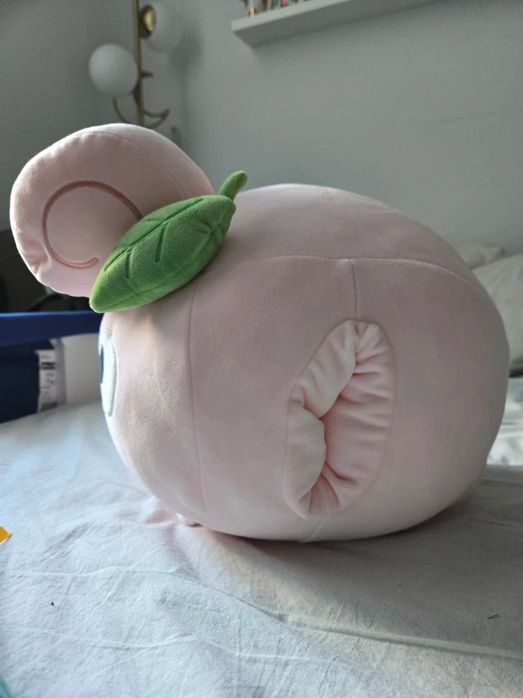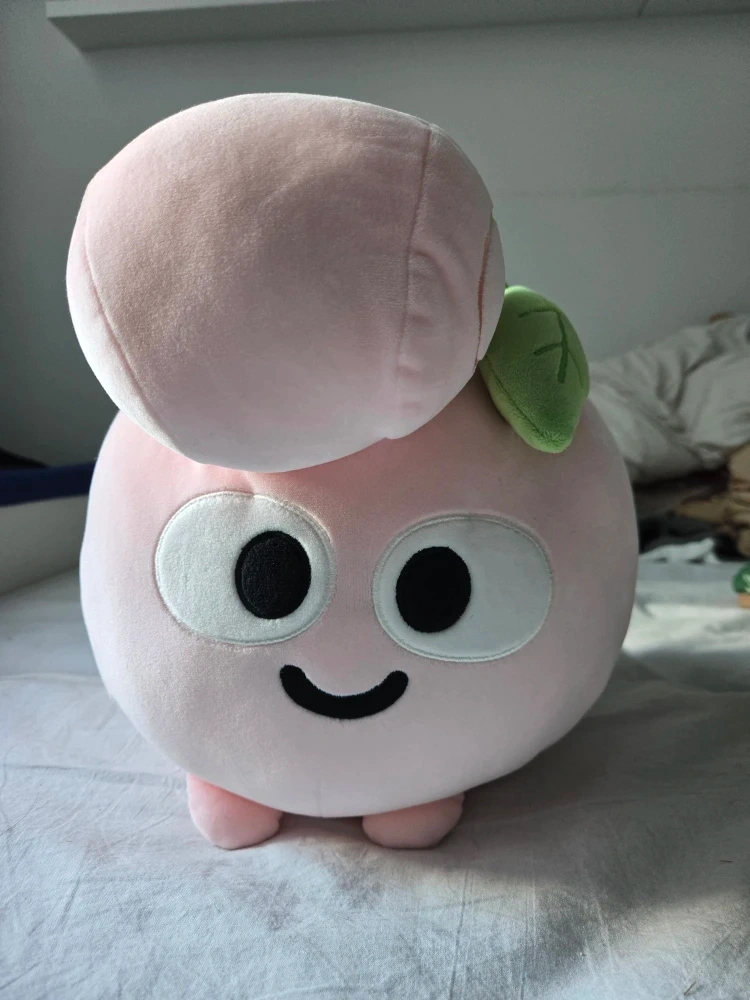 70Here's a cute pink peach plush toy! It has pockets on the side to put your hands in so keep your hands warm. It's in like new condition.