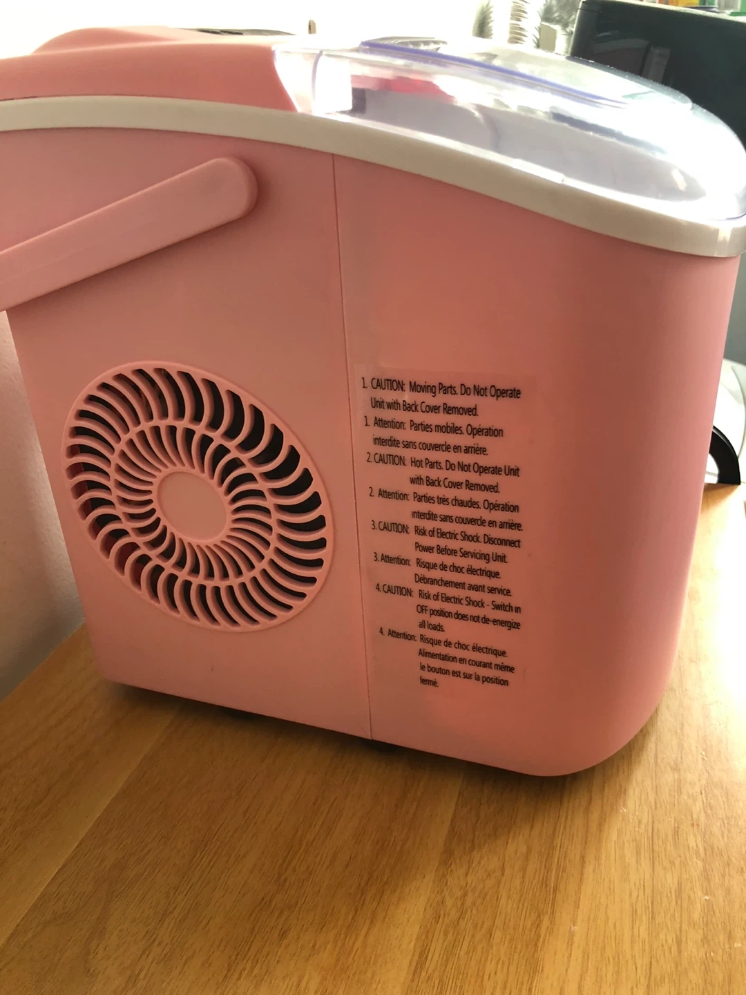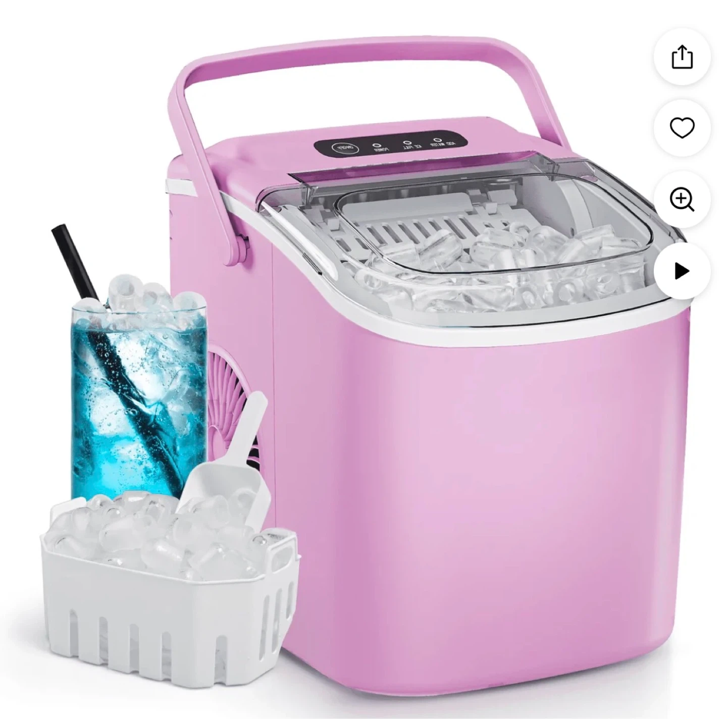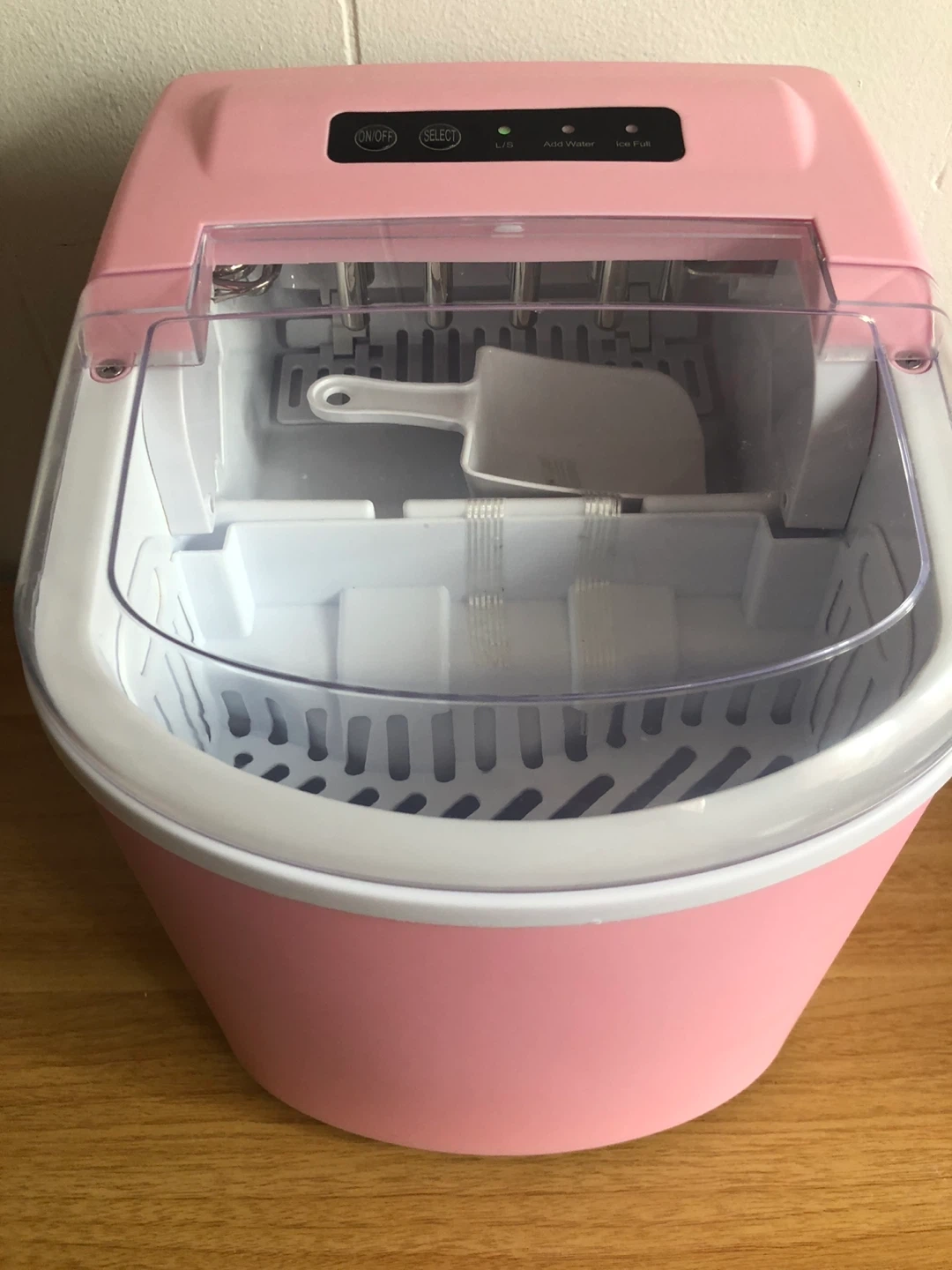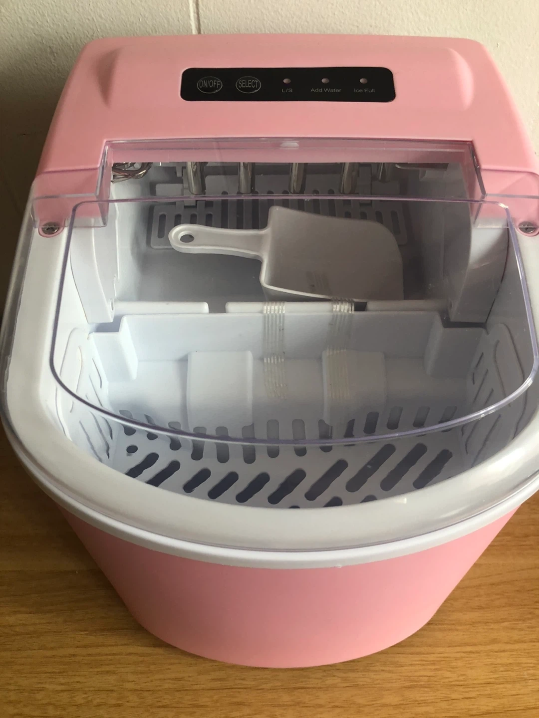 Selling a cute pink portable ice maker! It's in great condition and perfect for making ice quickly. It includes a scoop for easy ice removal and has settings for different ice sizes. Great for parties, camping, or just having ice on hand