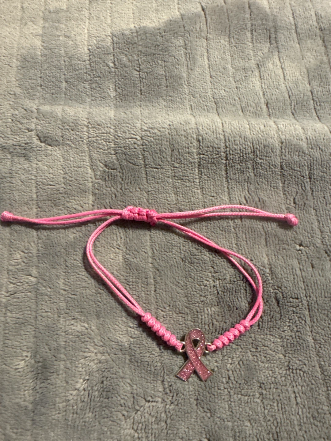 70Selling a pink ribbon bracelet. This bracelet is a simple and meaningful accessory
