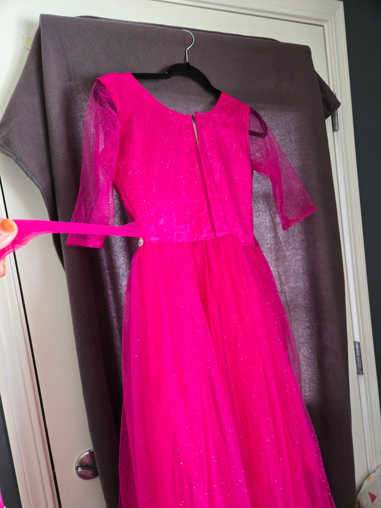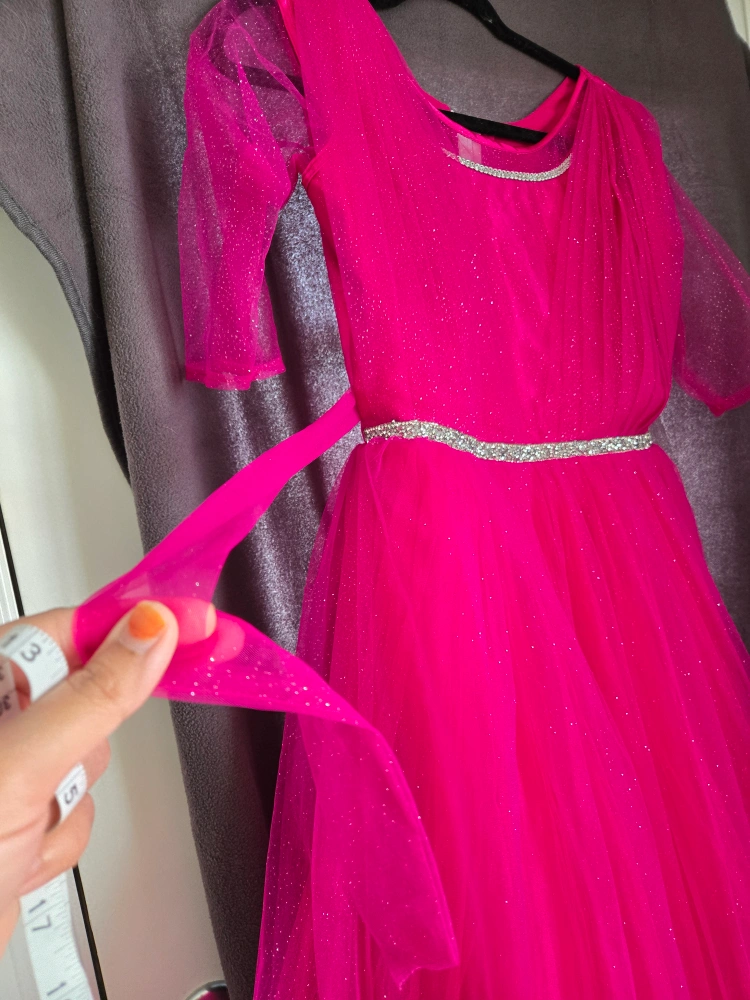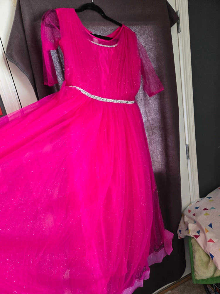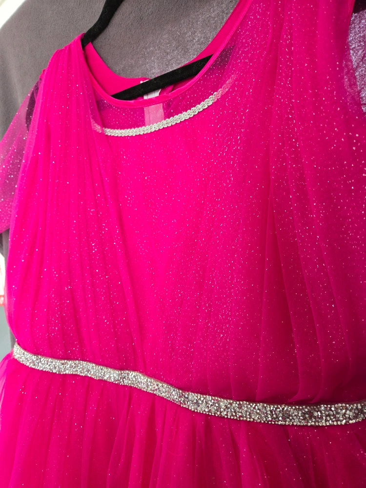 A beautiful pink dress with sparkly accents! It's in great condition and ready for a new owner. Perfect for parties or special occasions