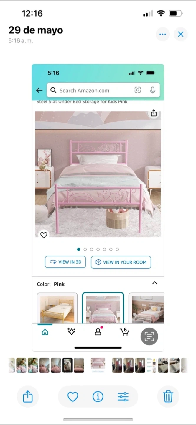 18Selling a pink steel slat bed frame, perfect for a kid's room! It's in good condition and ready for a new home. The color is a soft pink, and it's designed with a cute, decorative headboard. It's a sturdy frame and provides good support for a mattress