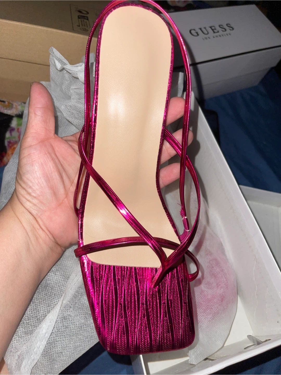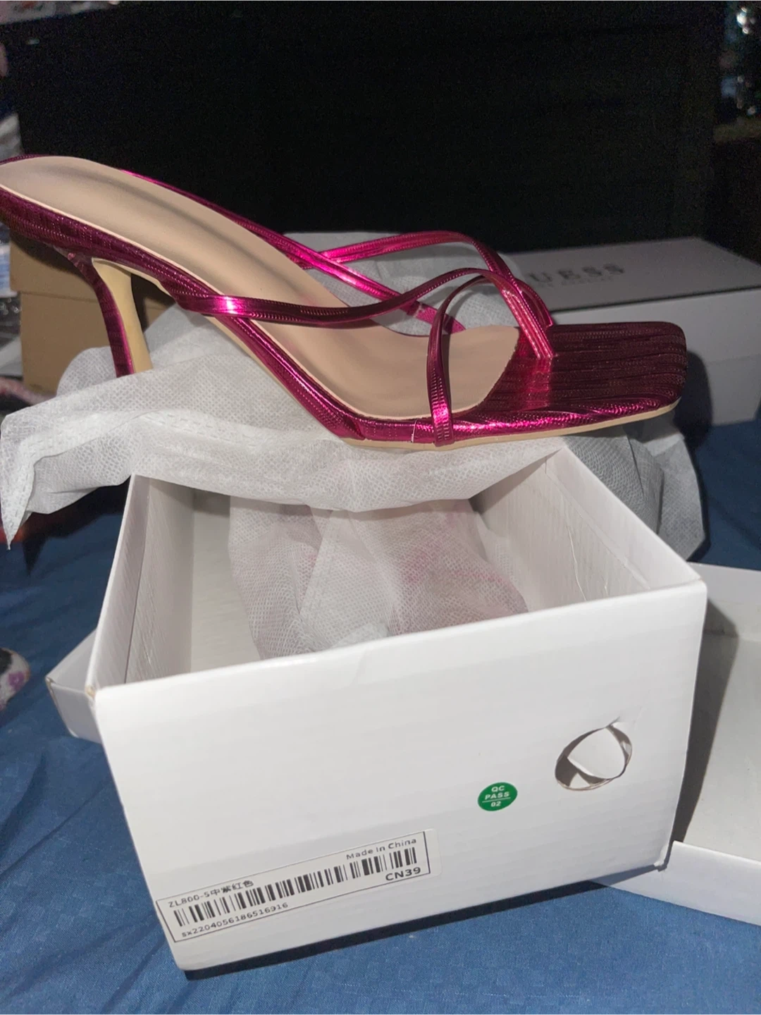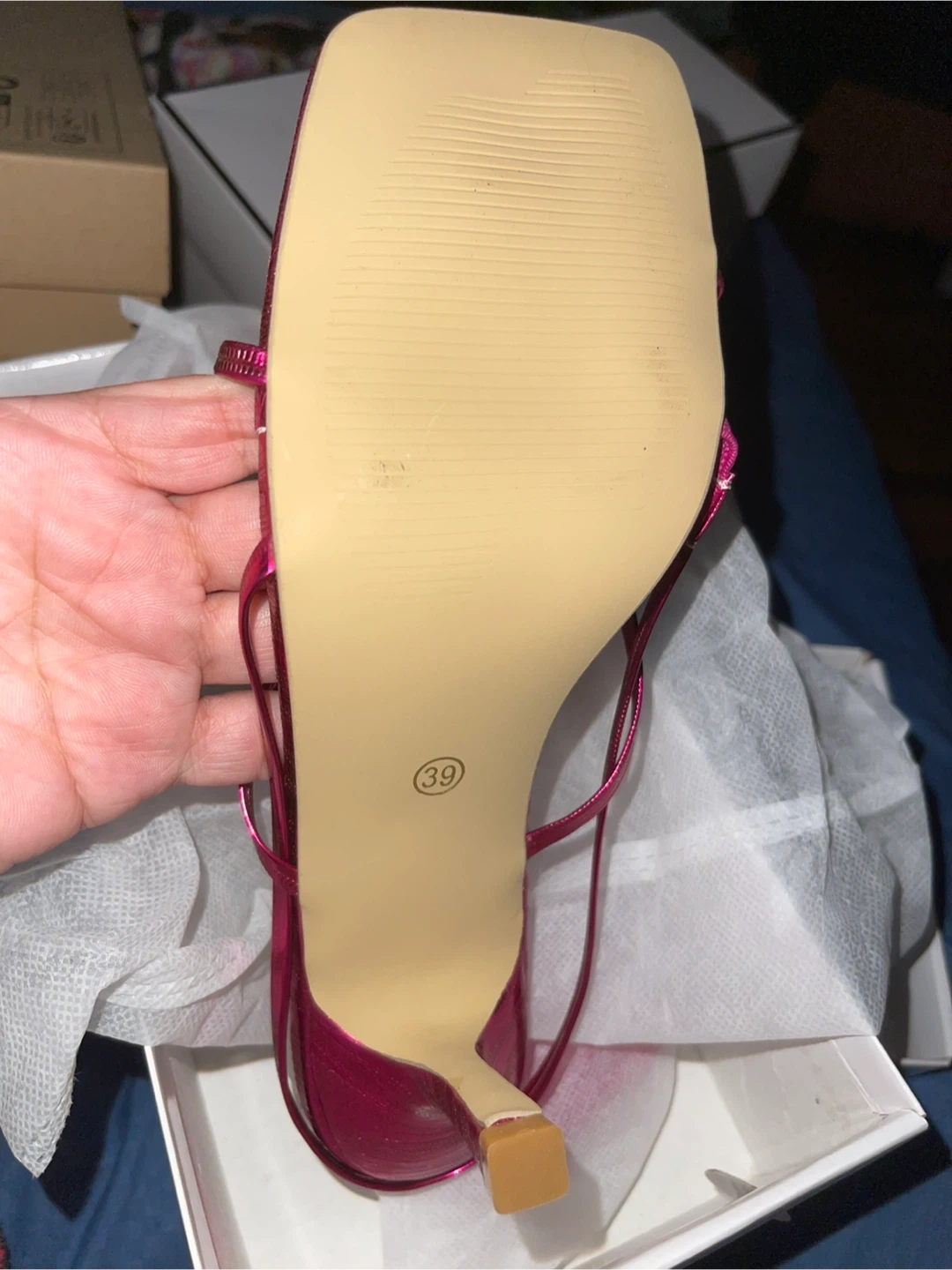 Selling a pair of stylish pink strappy heels. They come in the original box and are in great condition! The size is CN39, which is approximately a US size 8.5.