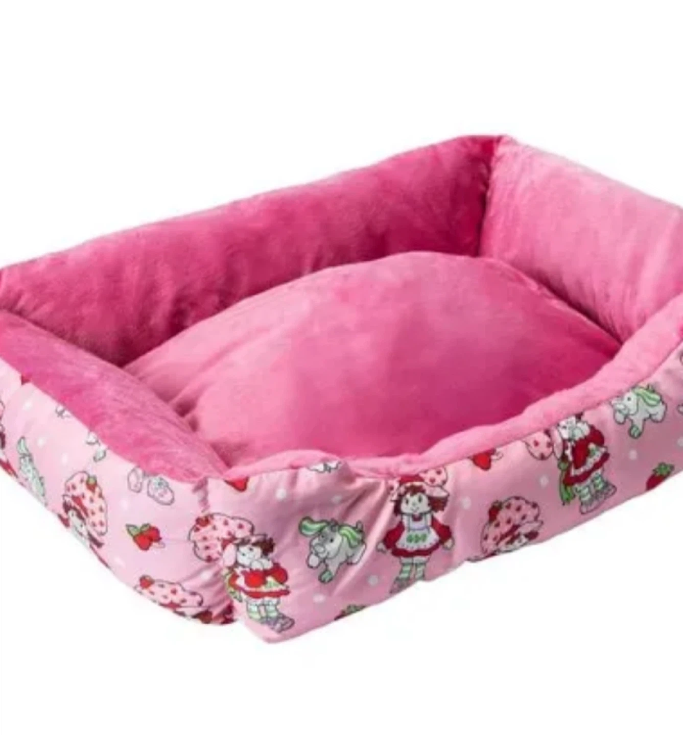 Here's a cute pink pet bed with a Strawberry Shortcake pattern! It's in great condition and ready for your furry friend to enjoy