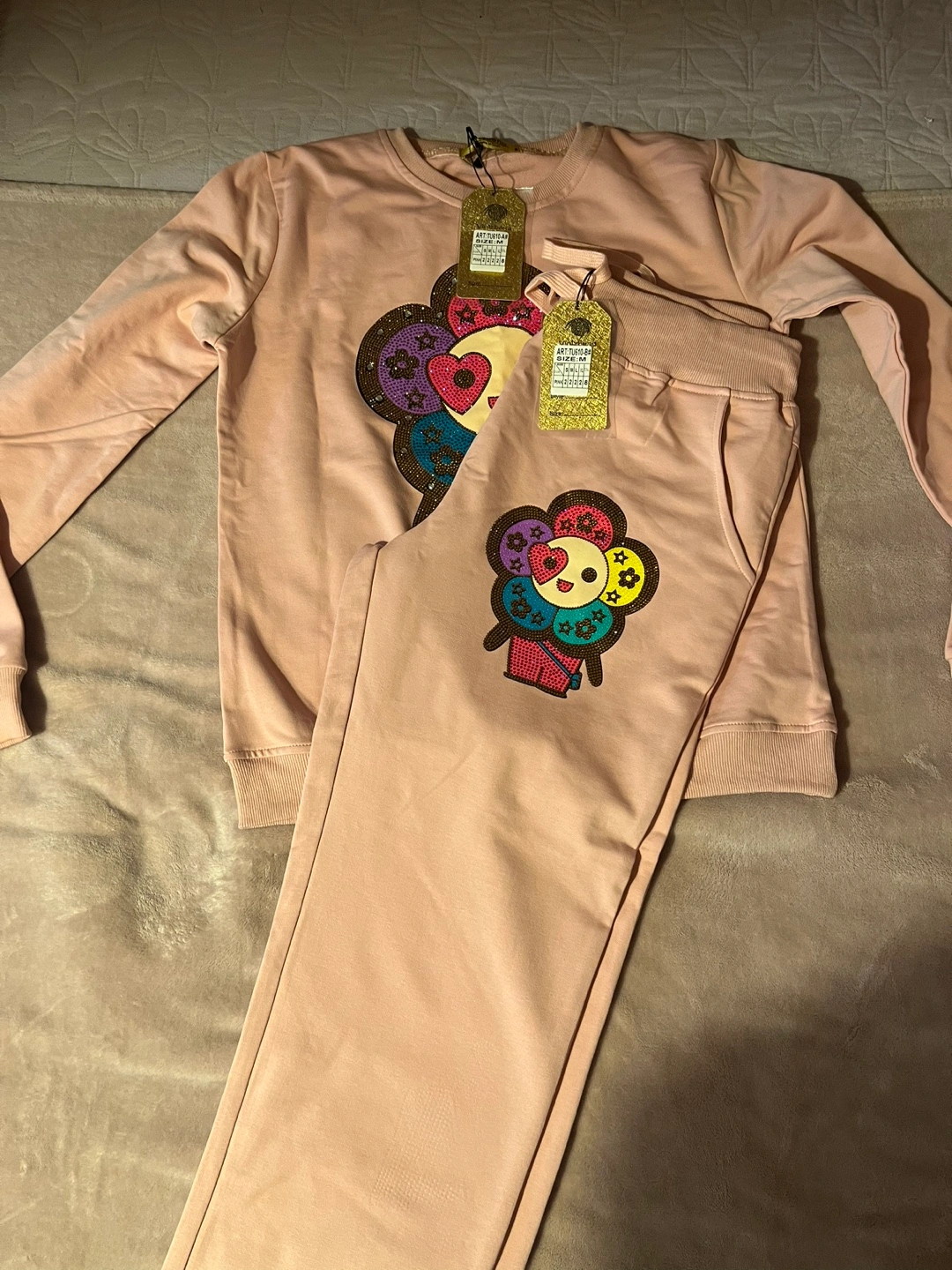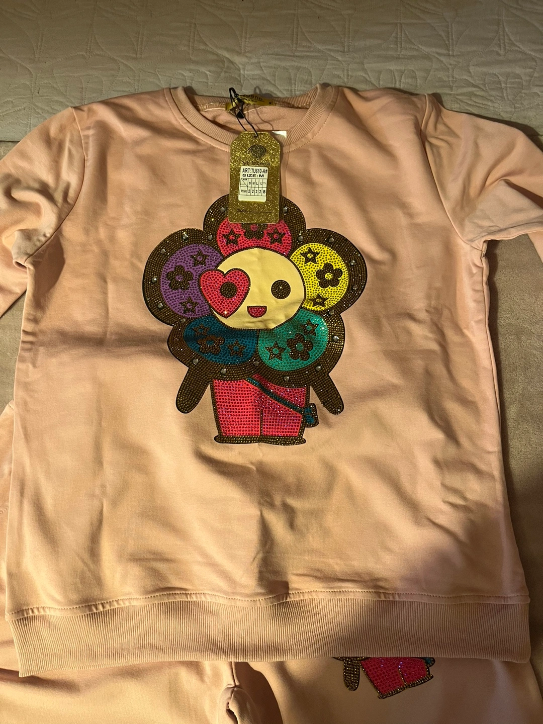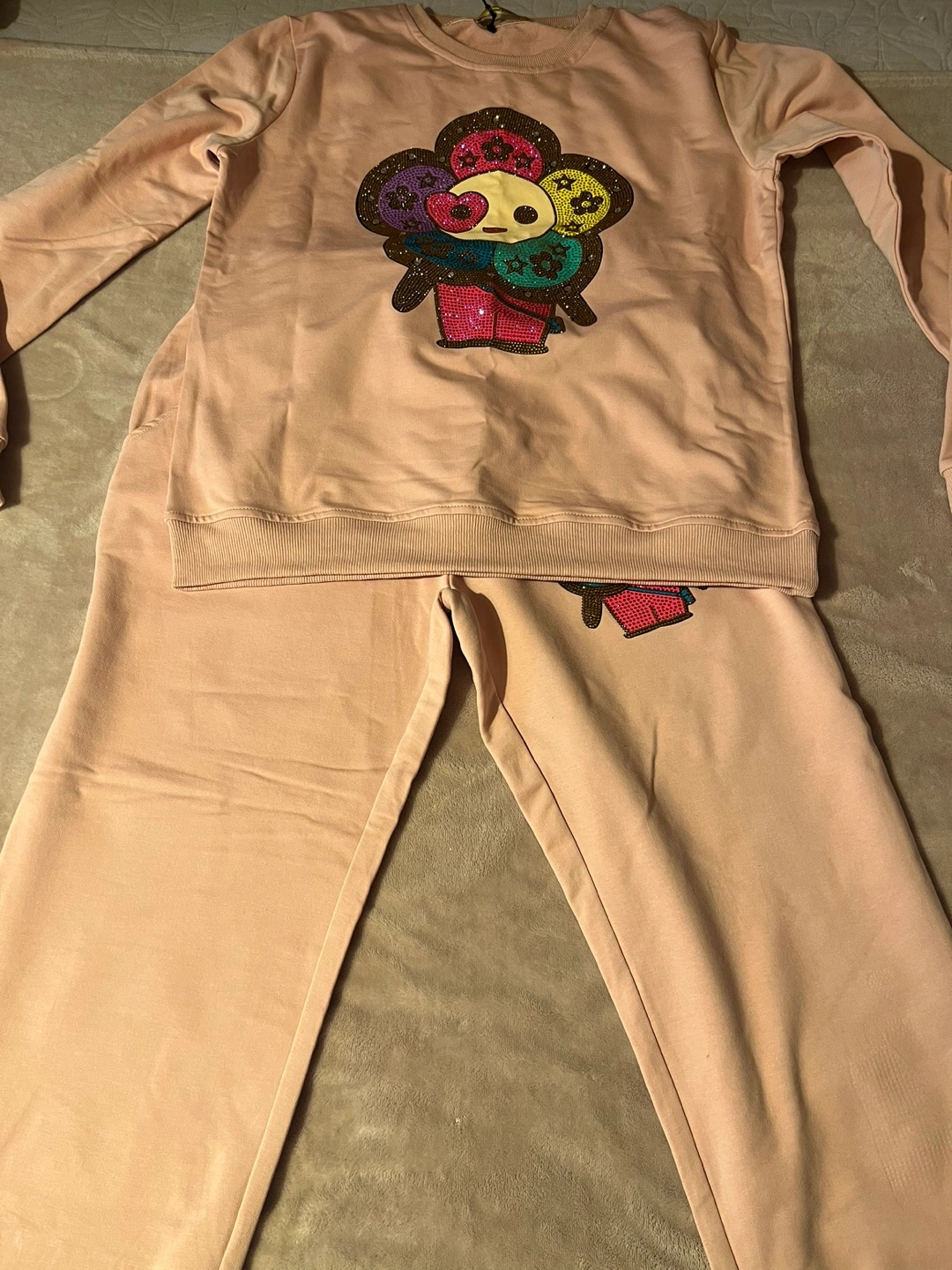 31Pink sweatsuit with long sleeves and a matching pair of pants. Features rhinestone design on front of both pieces. *Pick up only near midway airport. **Adult size.
