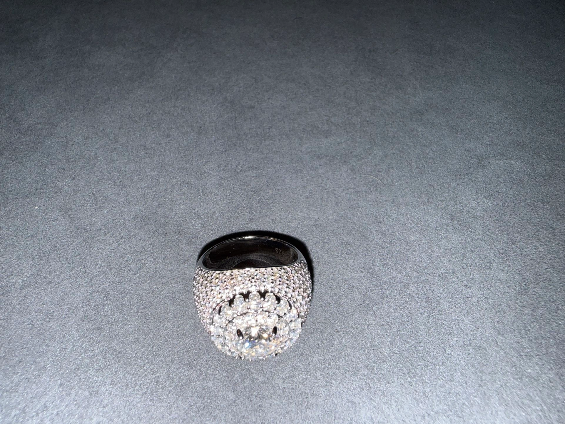 Highly crafted 925 Sterling Silver Iced out Harlem Dome Ring. This is a distinctly crafted ring with moissanite lab diamonds. Size 9. Good quality is not cheap.