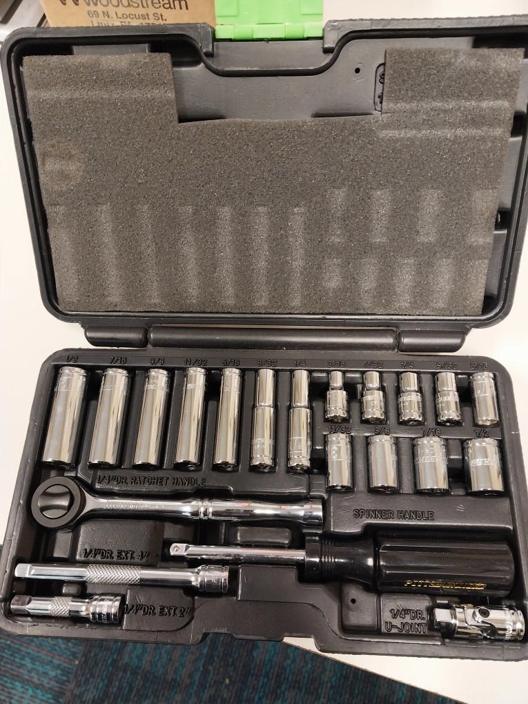 Selling a Pittsburgh Pro socket set that comes with its original case. The set appears to be in good condition and includes a variety of sockets and handles. Perfect for any DIY projects or professional use!