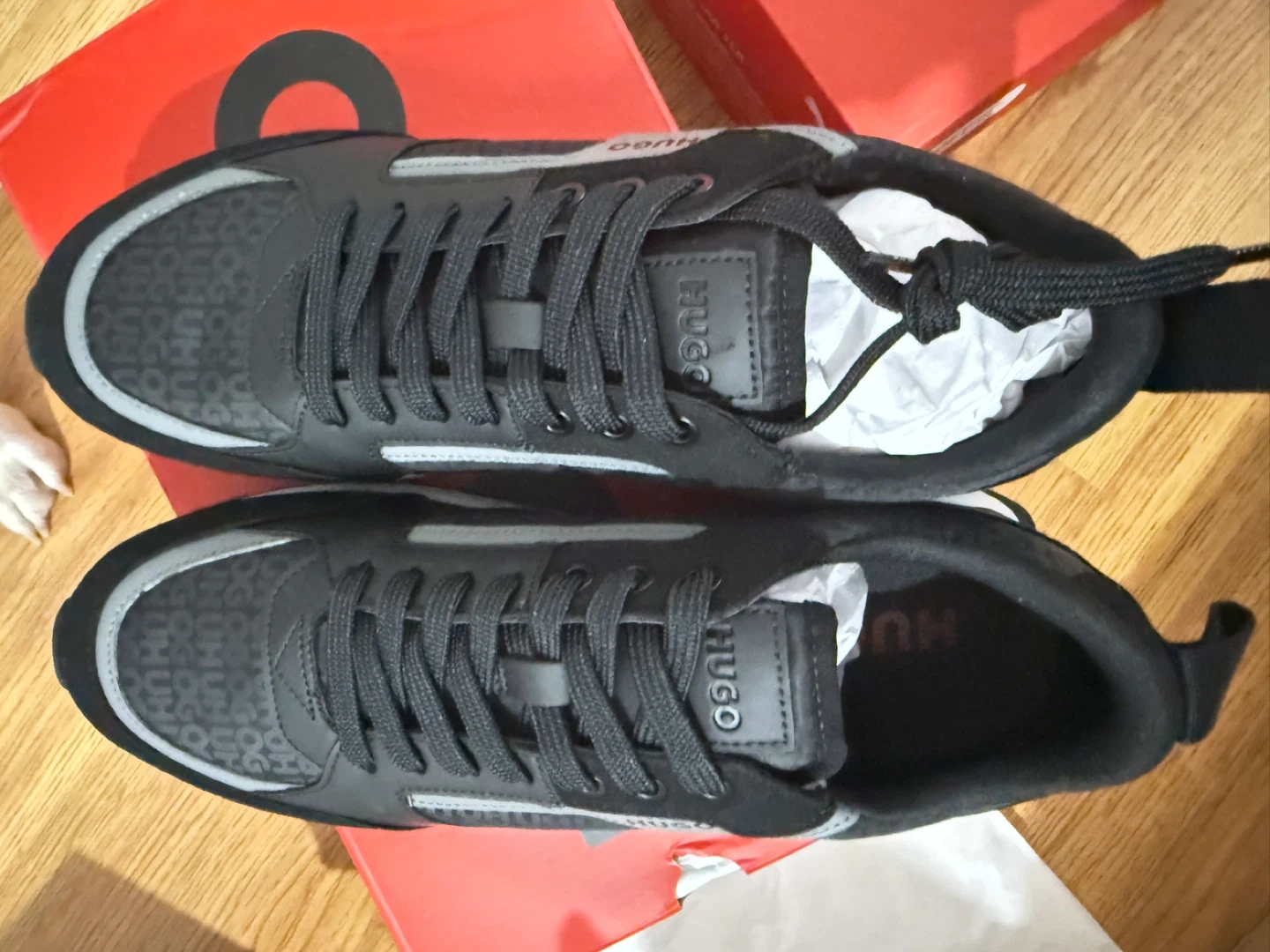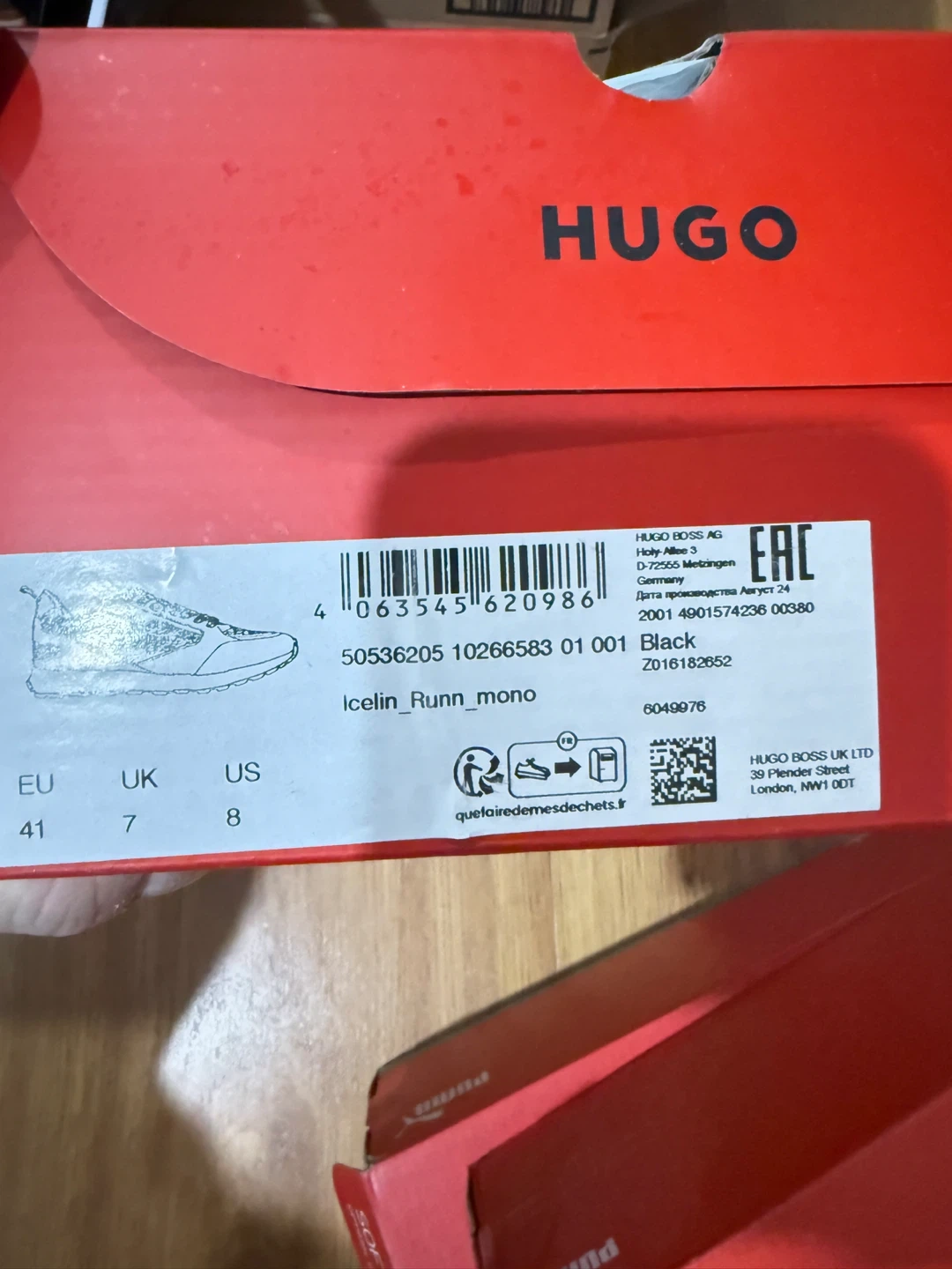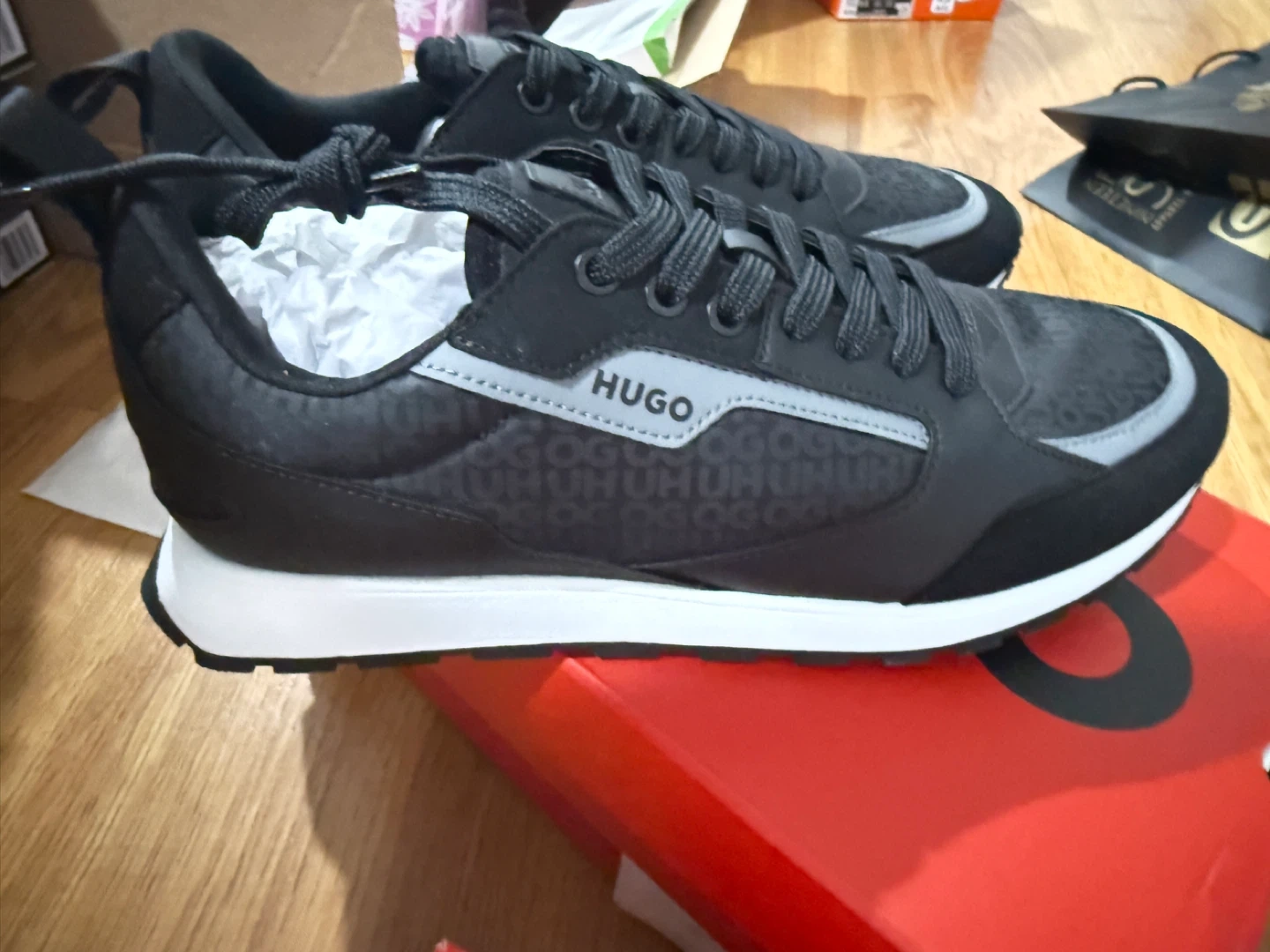 Selling a pair of Hugo Boss Icelin Runn Mono sneakers in black, size US 8! They come with the original box