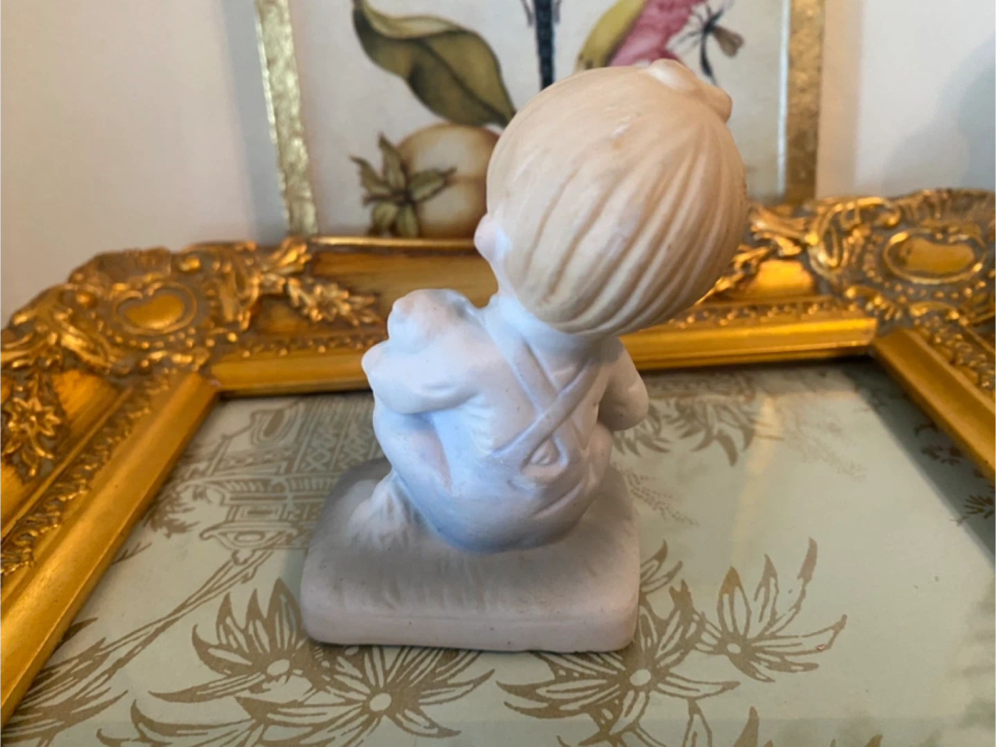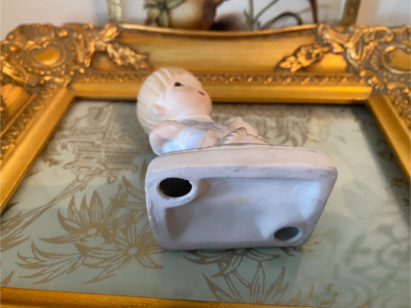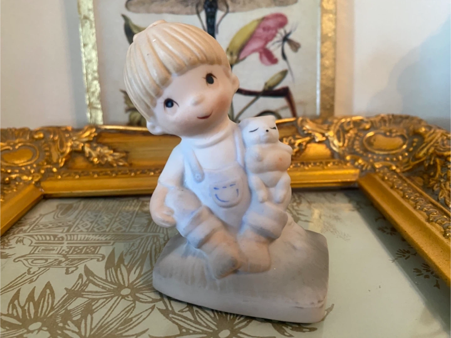 Charming vintage porcelain figurine depicting a young boy holding a baby. This sweet piece is crafted from porcelain and displays a tender scene. It's a lovely addition for collectors or as a decorative accent!@casa_s_decor pick up in the Bronx