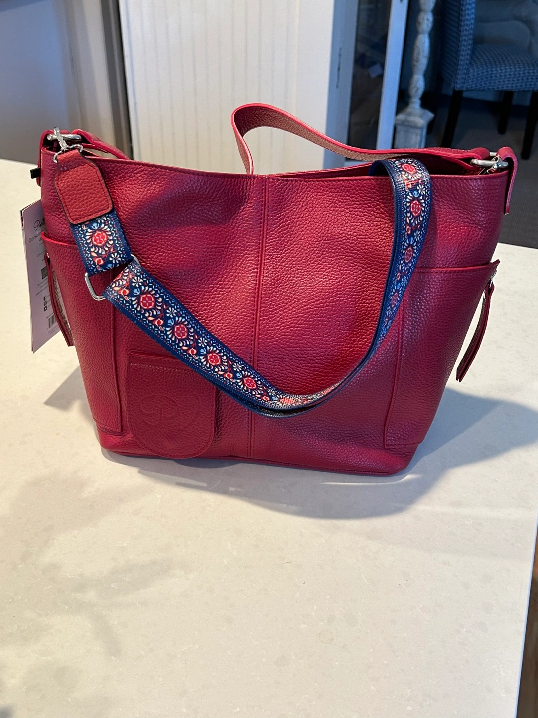 Genuine Italian leather wine purse. Holds up to 2 bottles of wine. Removable insulated pouch. Secret zippered pocket. Stylish and functional.