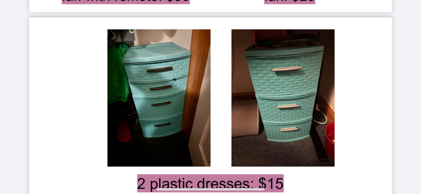 73Selling a cute plastic dresser with three drawers! It's in good condition and perfect for organizing your space. Great for storing clothes, toys, or anything else you need to keep tidy