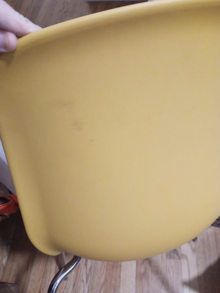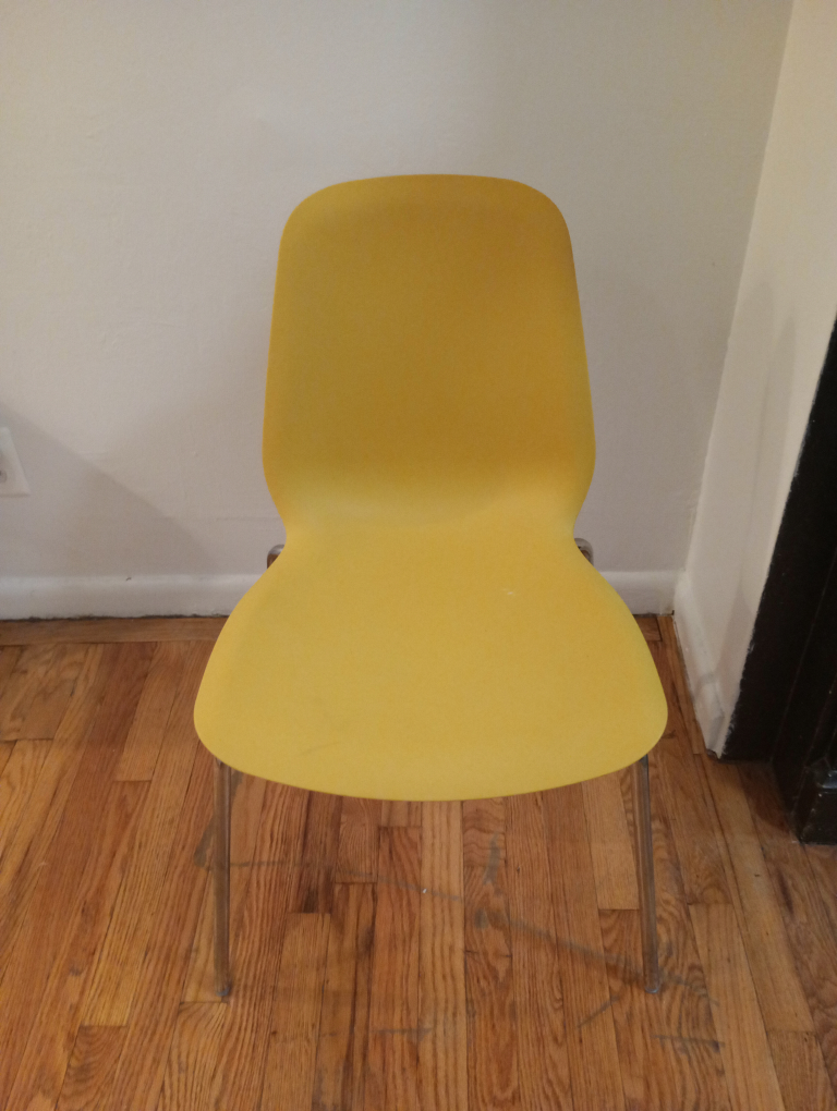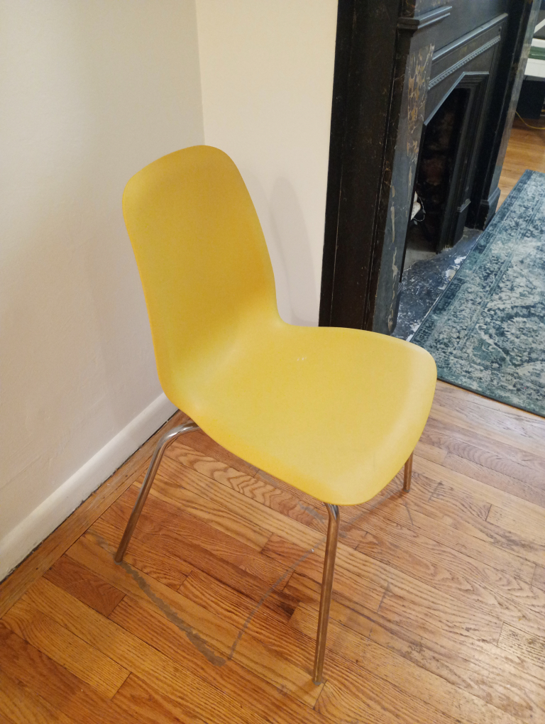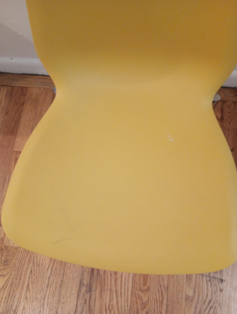22A plastic chair I stooped a few months ago. I realized I don't need it. It has a few scuffs on the seat and back (shown in photos) but is otherwise in good condition. #freecycle