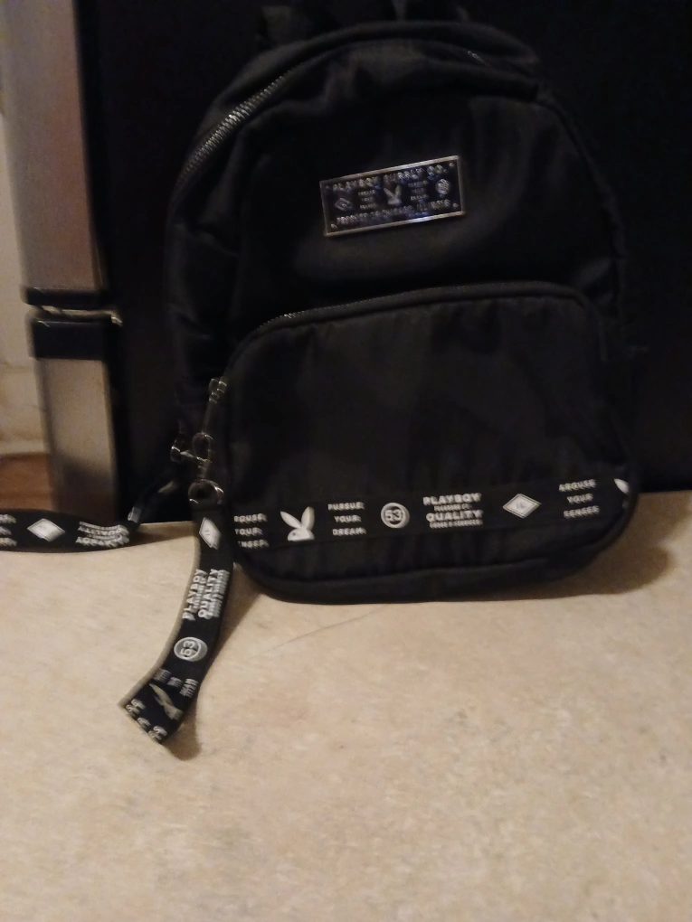 28Selling a cute black mini backpack from Playboy Supply Co! It's perfect for carrying just the essentials. The backpack is in great condition and features the classic Playboy logo. Great for everyday use!