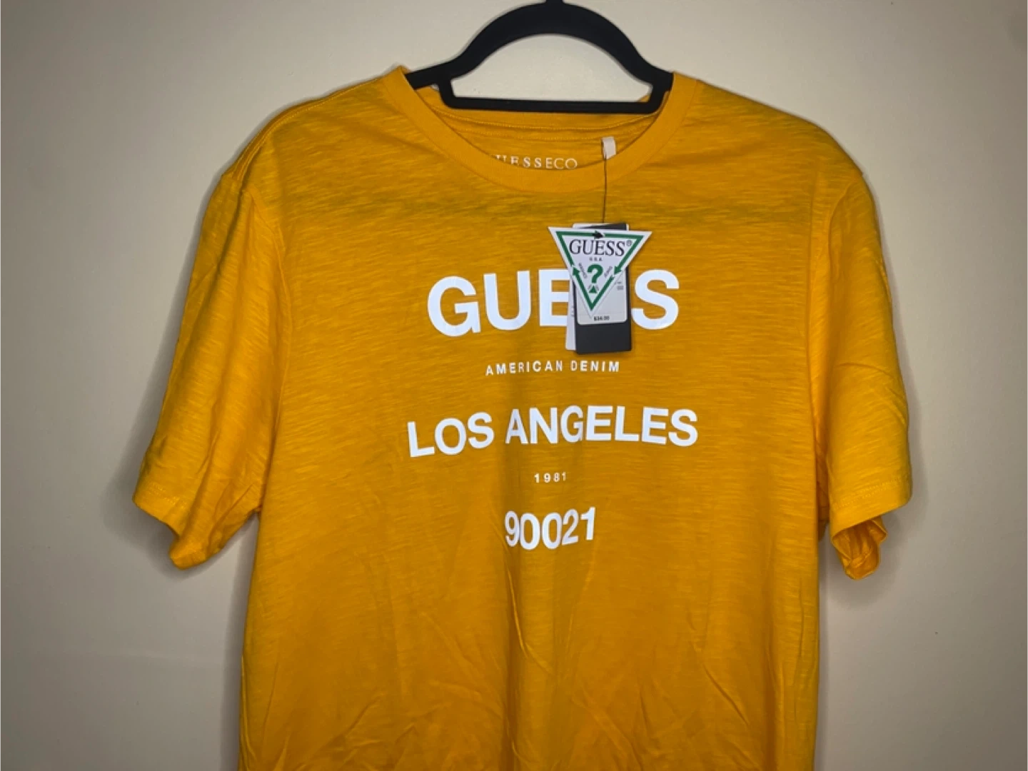 Selling a Guess yellow t-shirt with a Los Angeles design. It's in great condition and ready for a new home!