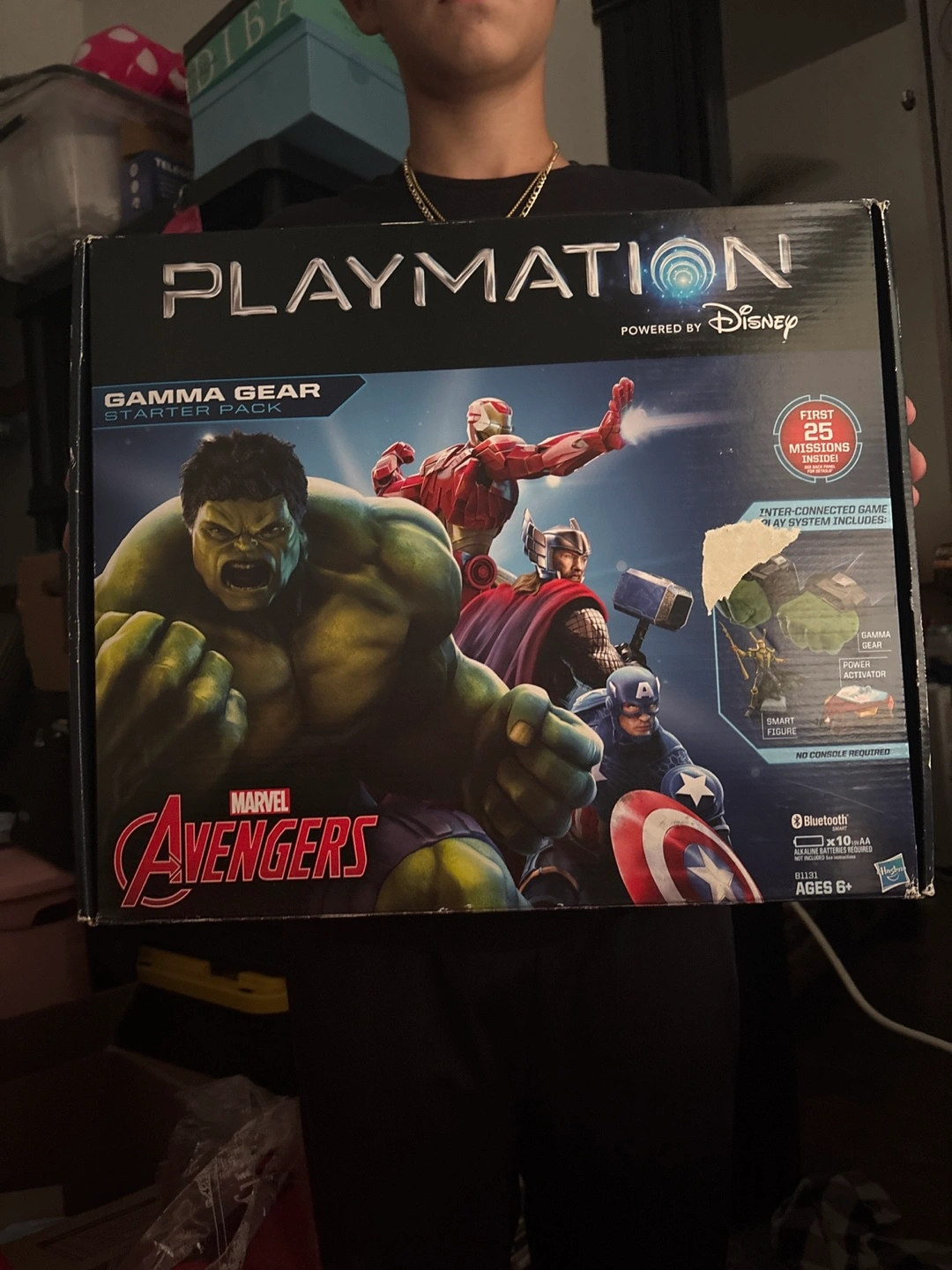 Selling a Playmation Gamma Gear Starter Pack featuring the Marvel Avengers! This set is powered by Disney and includes the interconnected game system with the Gamma Gear, Power Activator, and Smart Figure. It features 25 missions. Requires 10 AA batteries (not included). Recommended for ages 6+