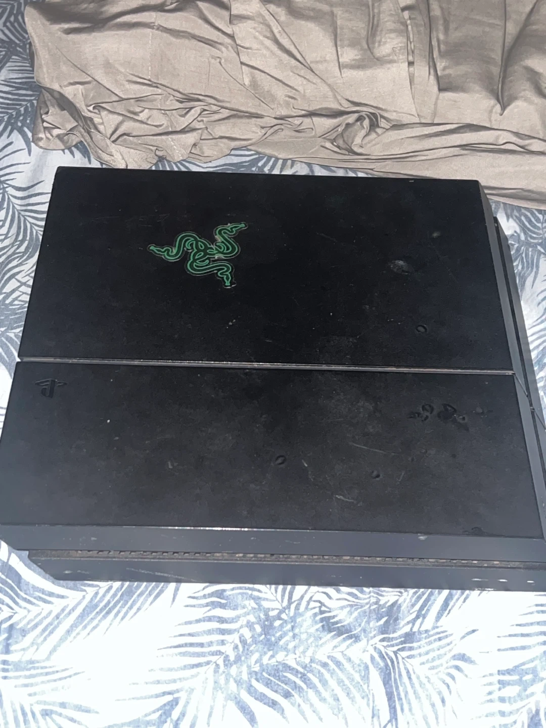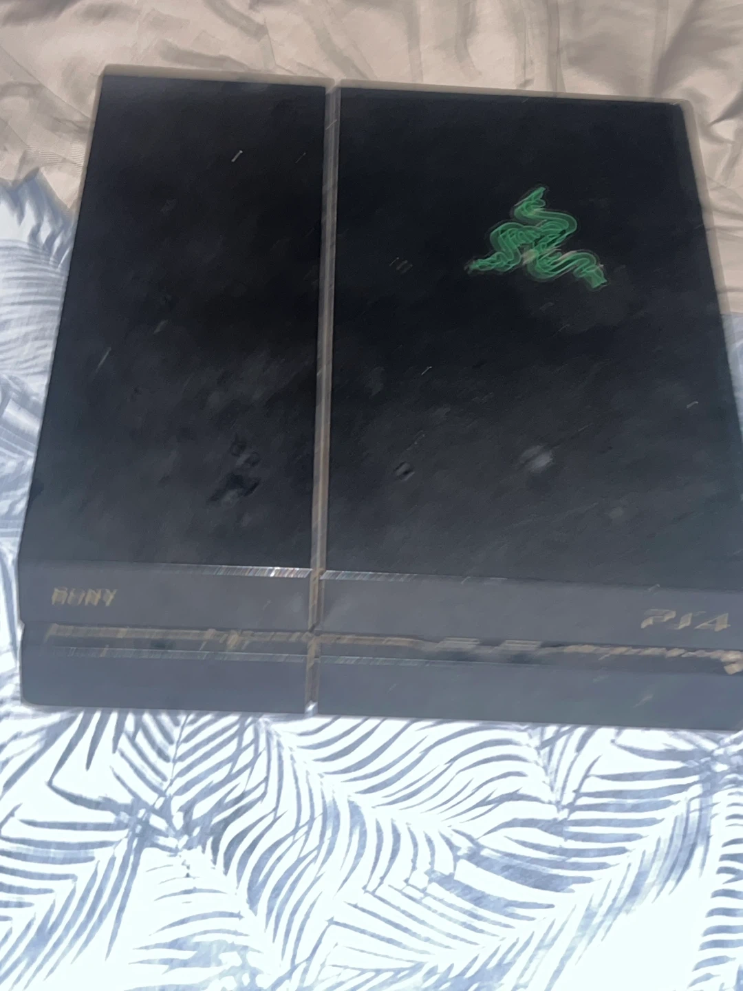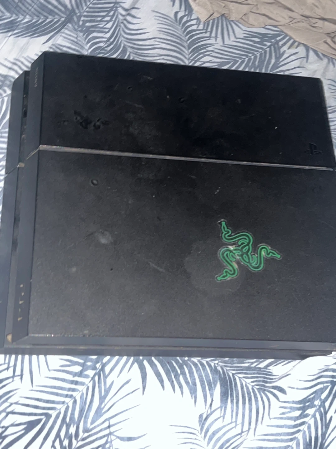 5Selling a used PlayStation 4. It has a Razer logo sticker on it. Please see photos for condition it comes with WIRES. (NO CONTROLLER)