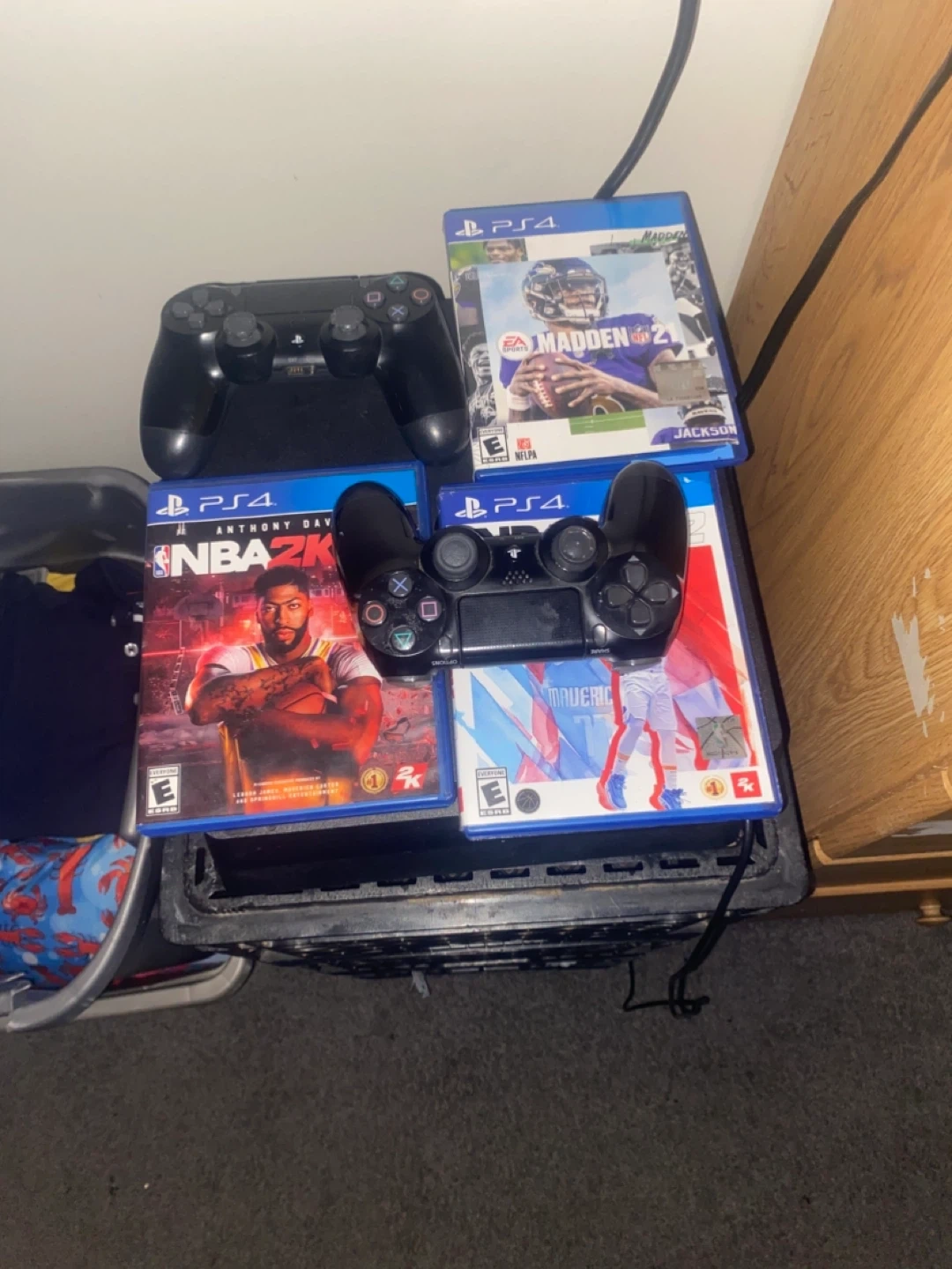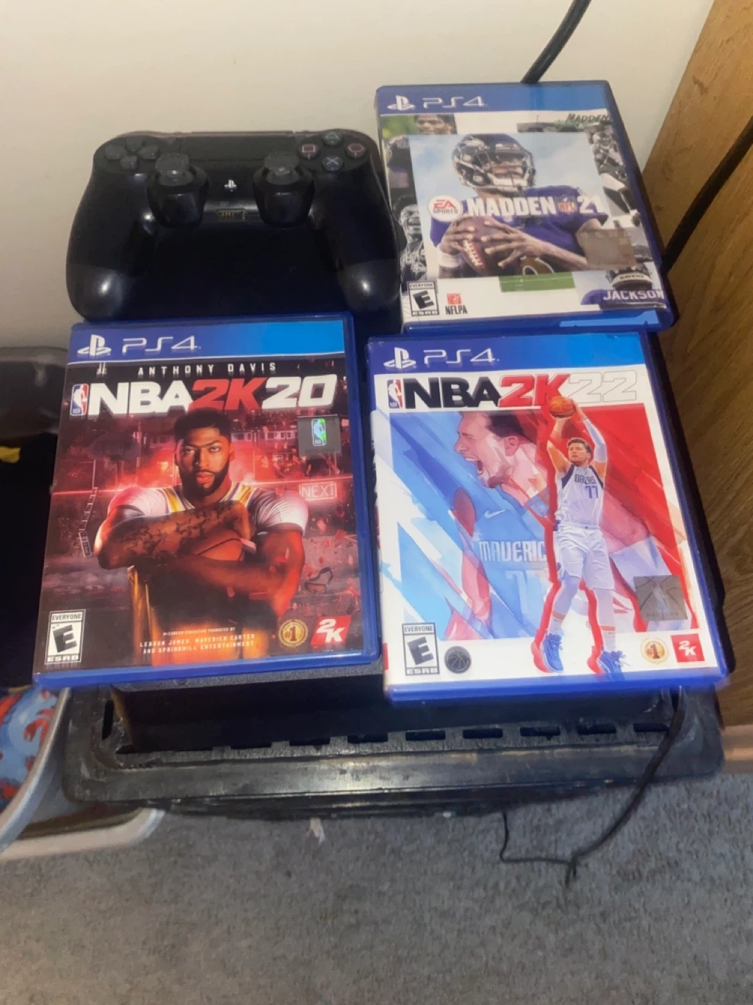 15Selling a used PlayStation 4 (PS4) console. It comes with a controller and some games: NBA 2K20, NBA 2K22, and Madden 21 ,