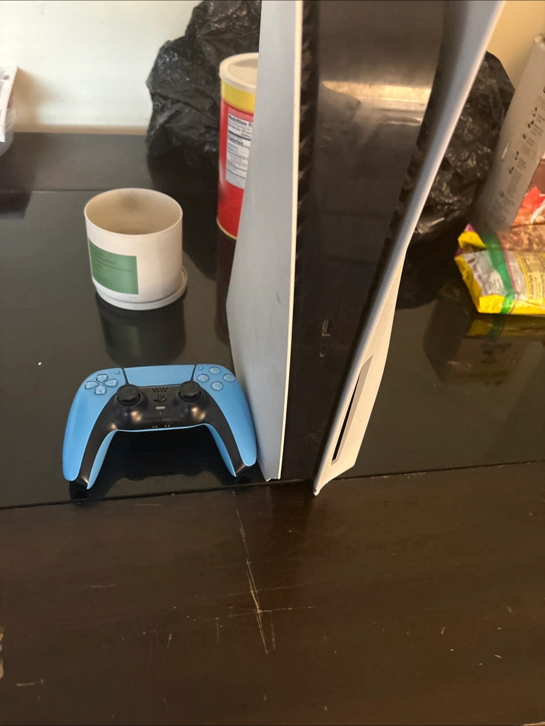 Selling a PlayStation 5 console with a blue controller. It's in great condition and ready for a new home!