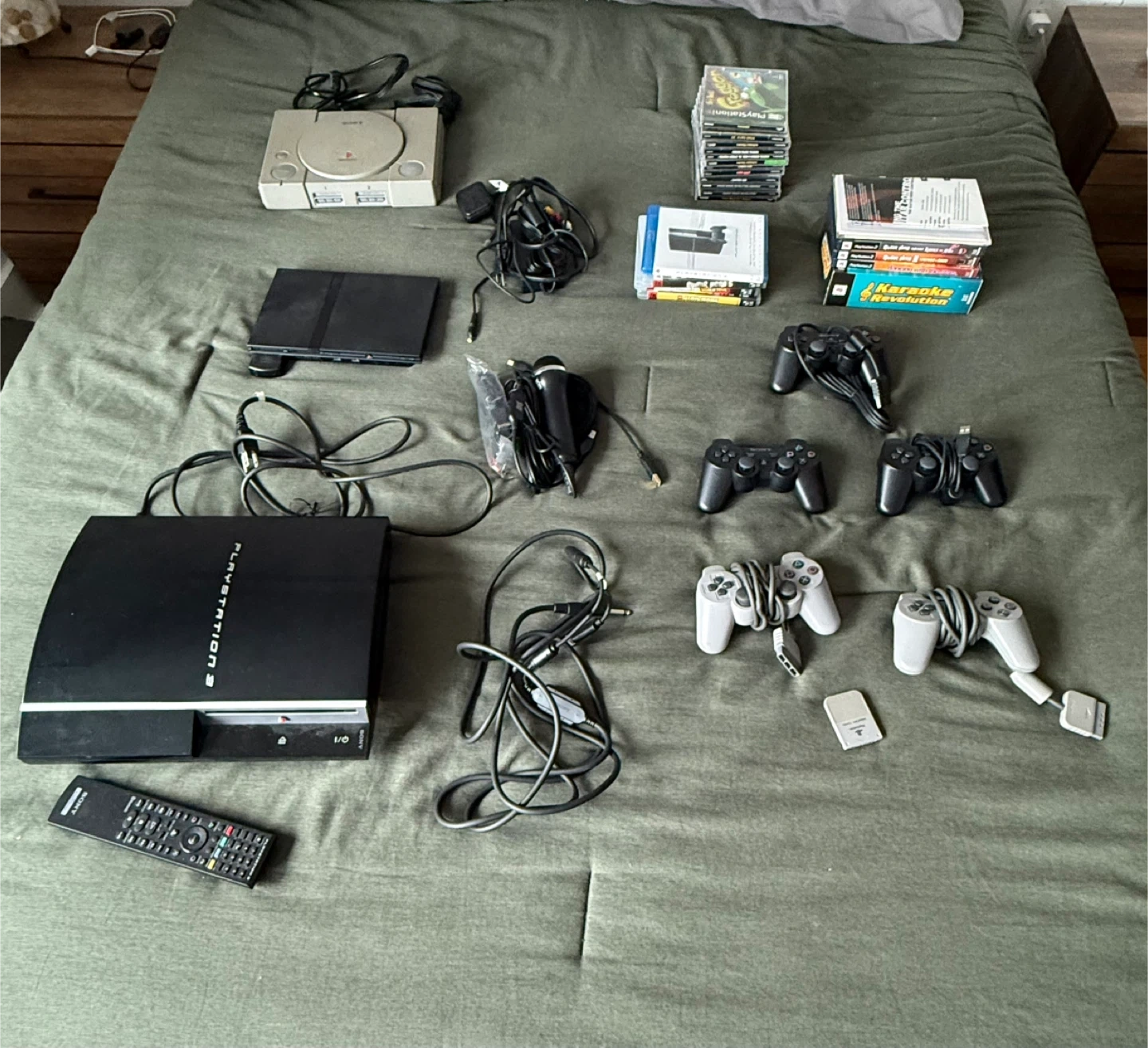 Selling a bundle of PlayStation consoles and accessories. Includes a PlayStation 1, PlayStation 2, and PlayStation 3 console. Also comes with controllers, games, and other accessories as pictured! Best offer gets whatever they’d like
