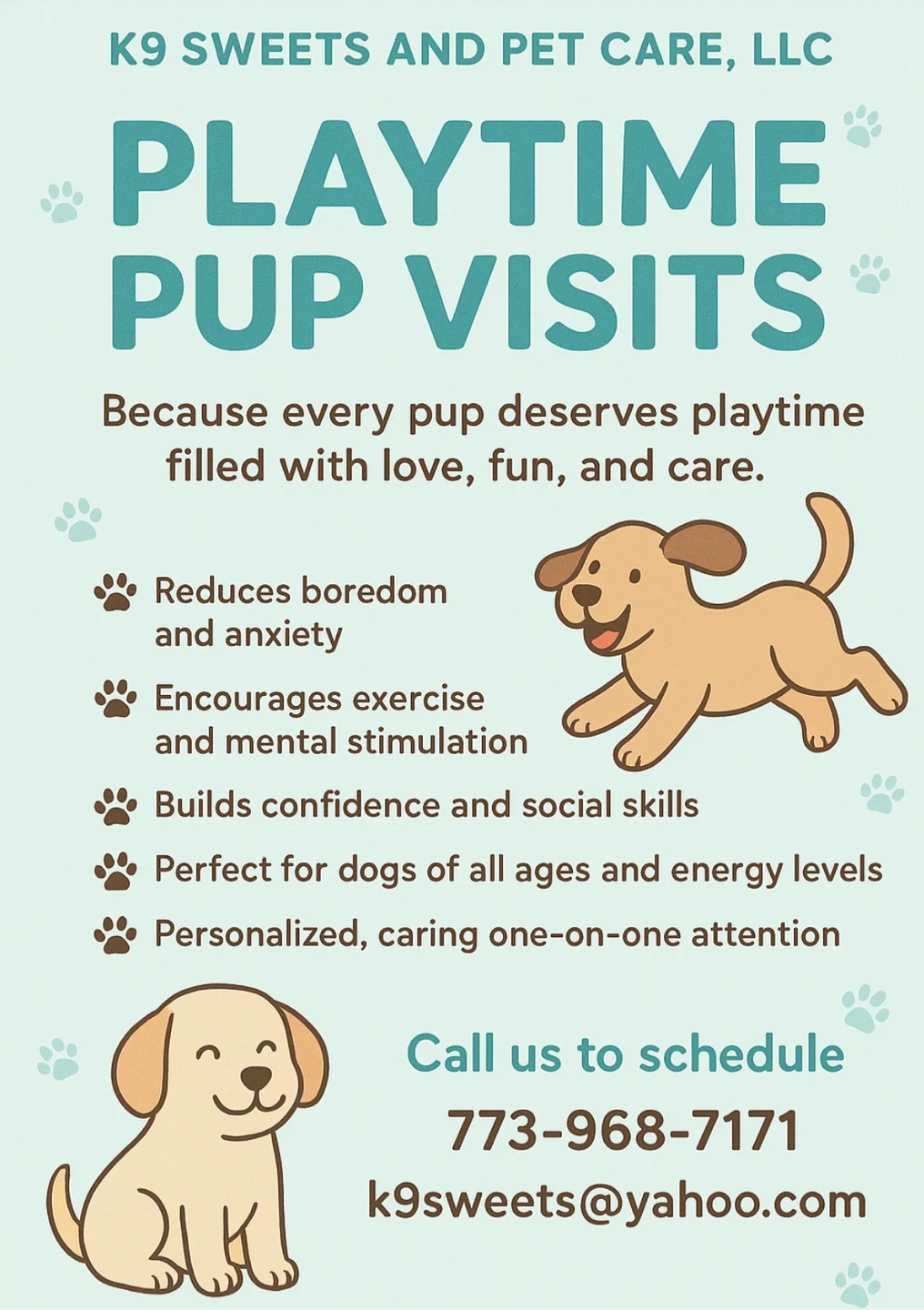 44Give your dog something to wag about! Our Playtime Pup Visits are perfect for pups who need a little extra fun, attention, and care during the day.