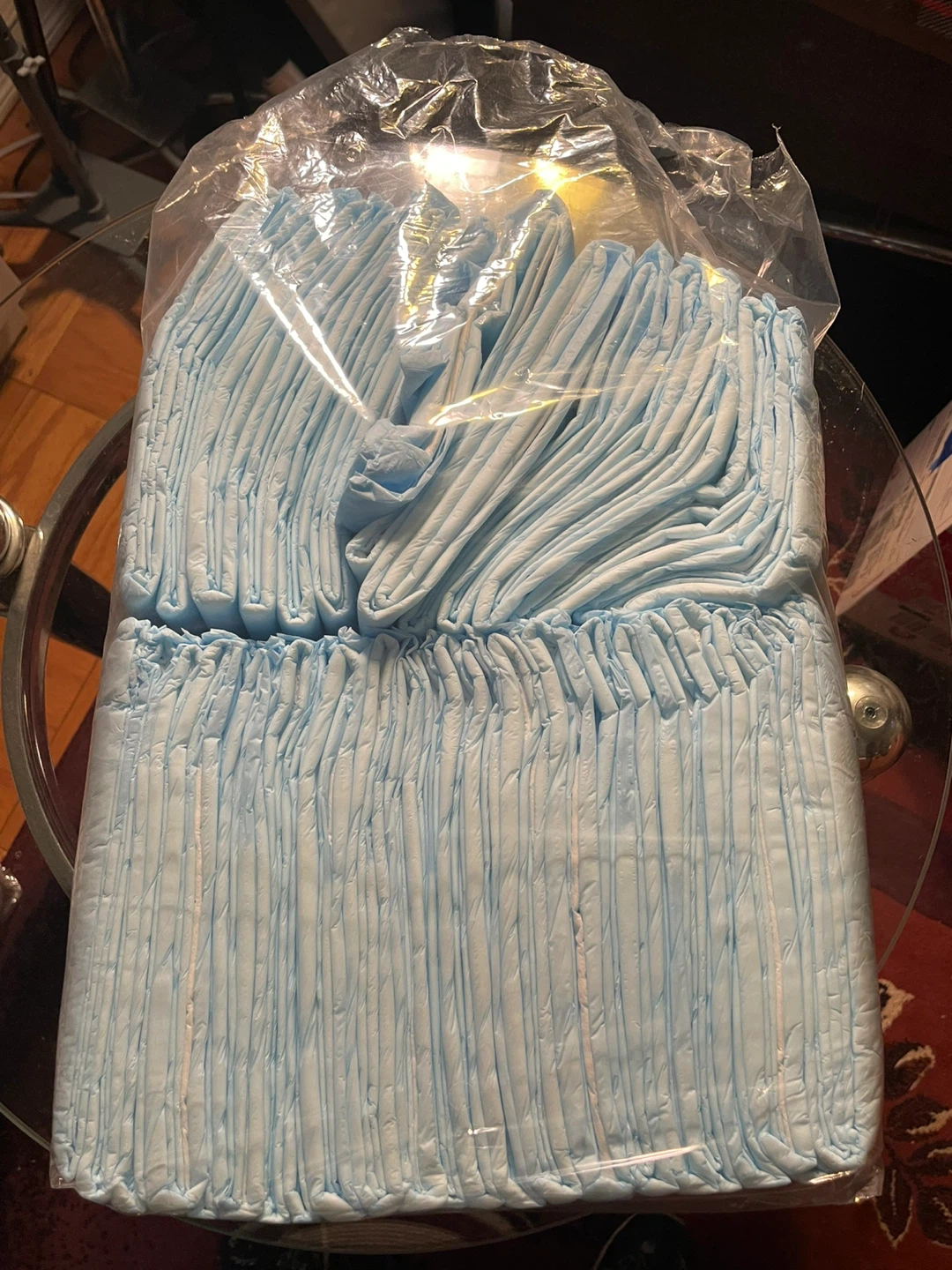 I'm selling 3 new disposable underpads. They're blue and still in their original packaging. one package was opened and a few were used so a few are missing. Price $40 negotiable